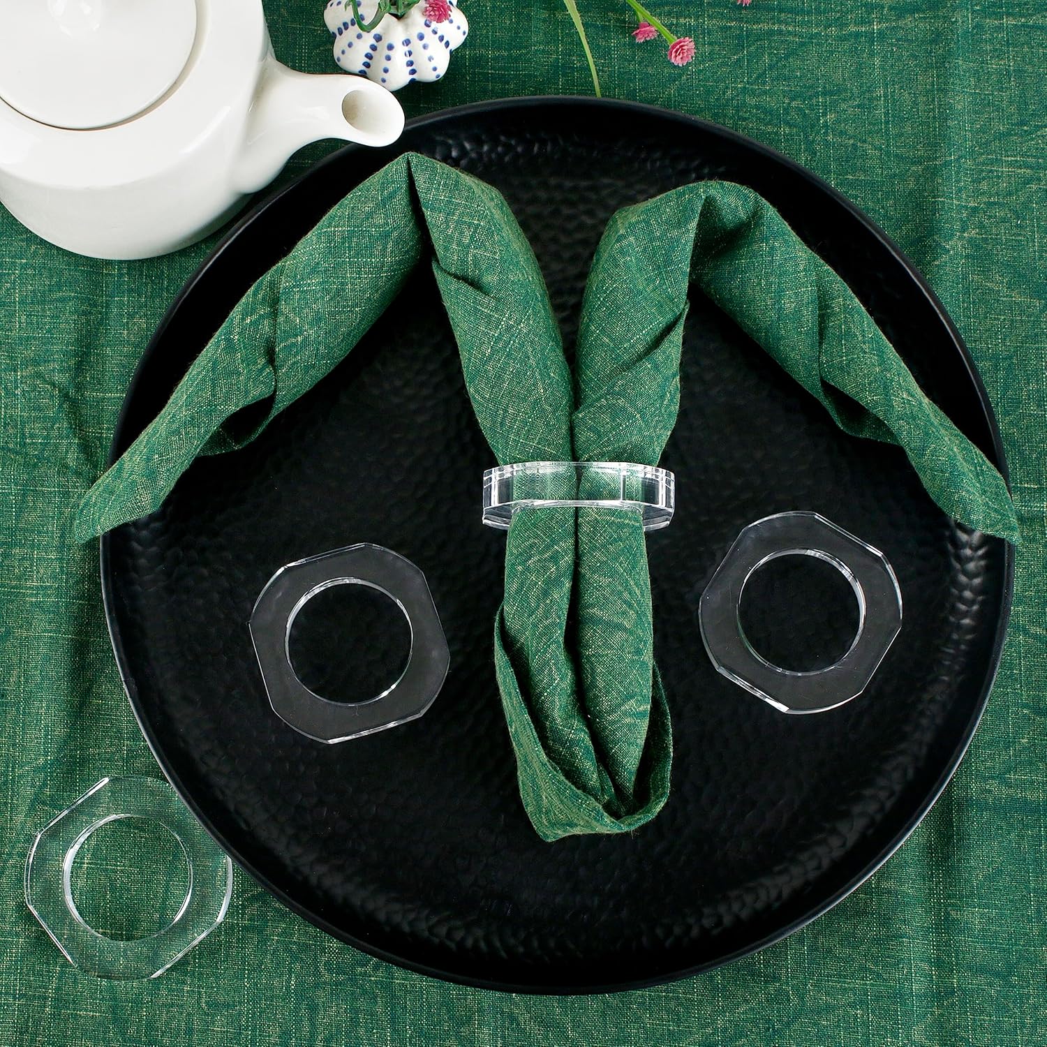 Clear Napkin Holder, Napkin Rings Set of 12, Fall Thanksgiving Christmas Napkin Rings, Festival Acrylic Napkin Ring Holders, Napkin Ring Bulk for Wedding, Party, Elegant Table Settings - CLEENTABLE