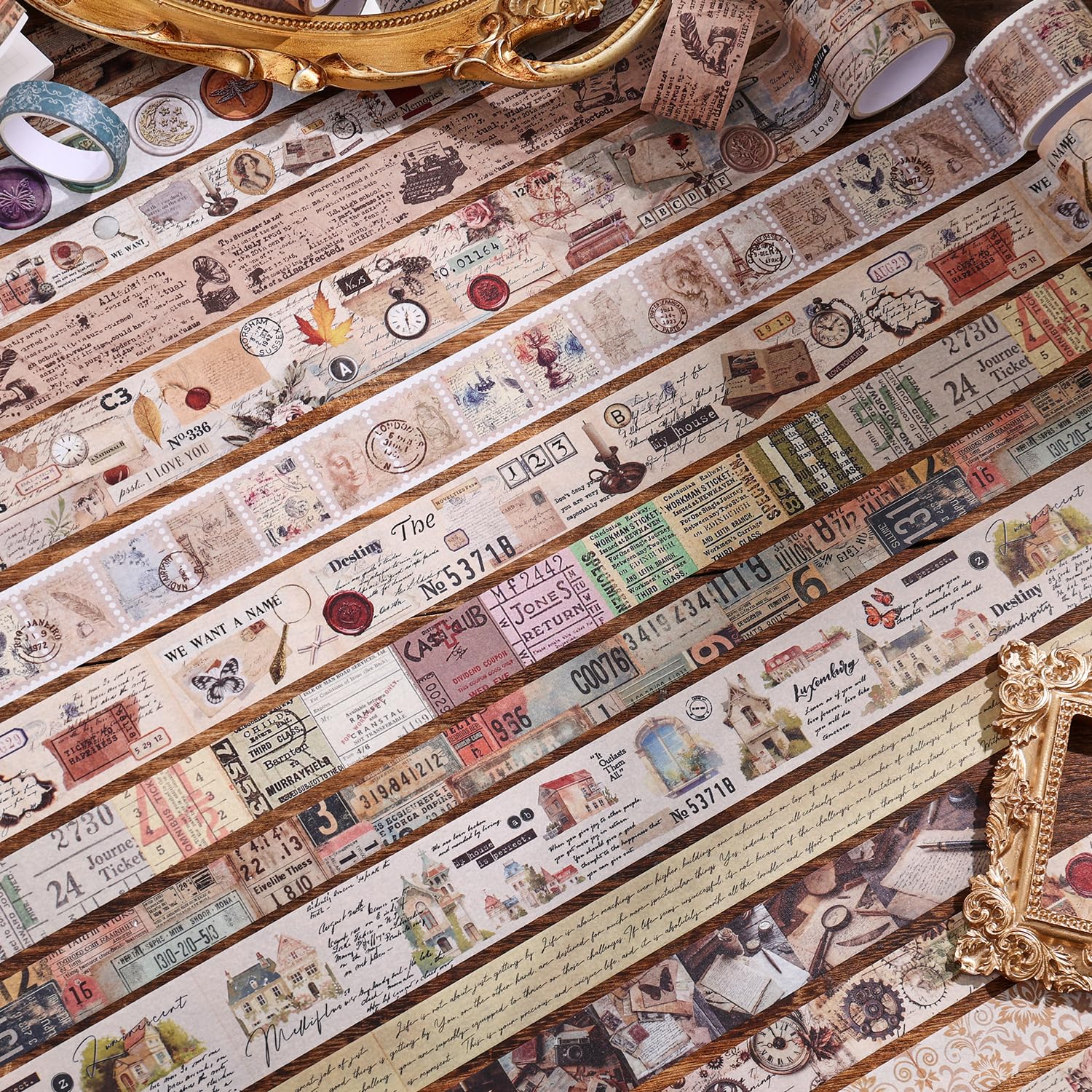 - This washi tape set comes with assorted vintage washi tape in various designs, their classic prints includeantique music sheets, handwritten script, world architecture, old newspaper articles and more. Which look very classic and vintage aesthetic washi tape kit, not easy to go out of date, bringing you enjoyment.
