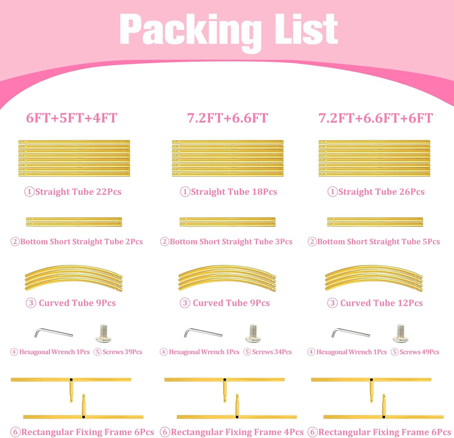 - 【Easy to Assemble】Our gold backdrop arch stand can be quickly assembled with screws in minutes by one person. Disassembly is also extremely convenient and fast. This arch backdrop stand is easy to carry so you can take it with you wherever you need to decorate. Gold metal square wedding arch would be a graceful archway in your party events or gardens.