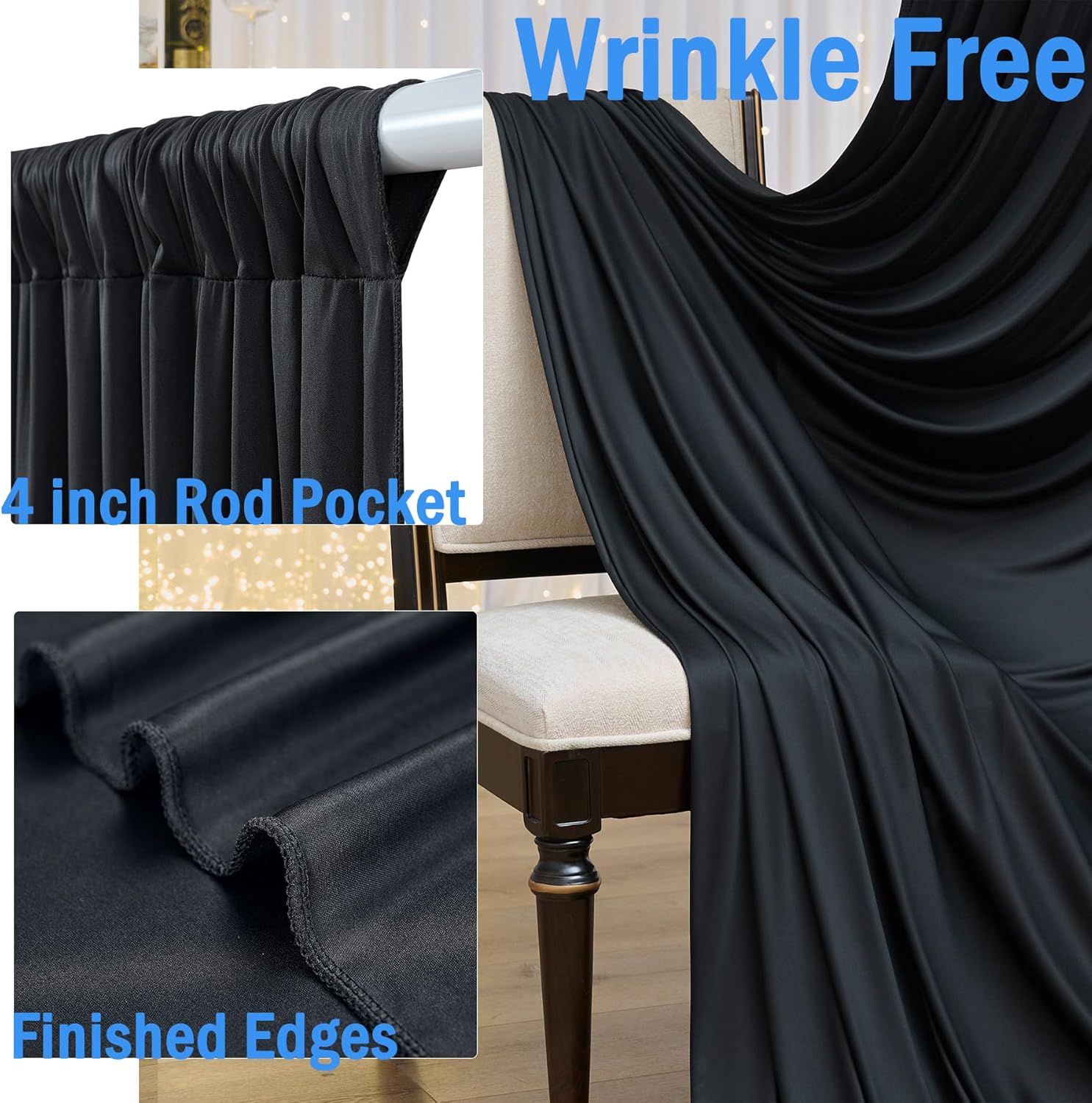10x10ft Wrinkle Free Black Backdrop Curtain for Parties, Silky Polyester Photo Backdrop Drapes Back Drop Cloth for Wedding Birthday Graduation Photography Photoshoot Decor 2 Panels 5x10ft