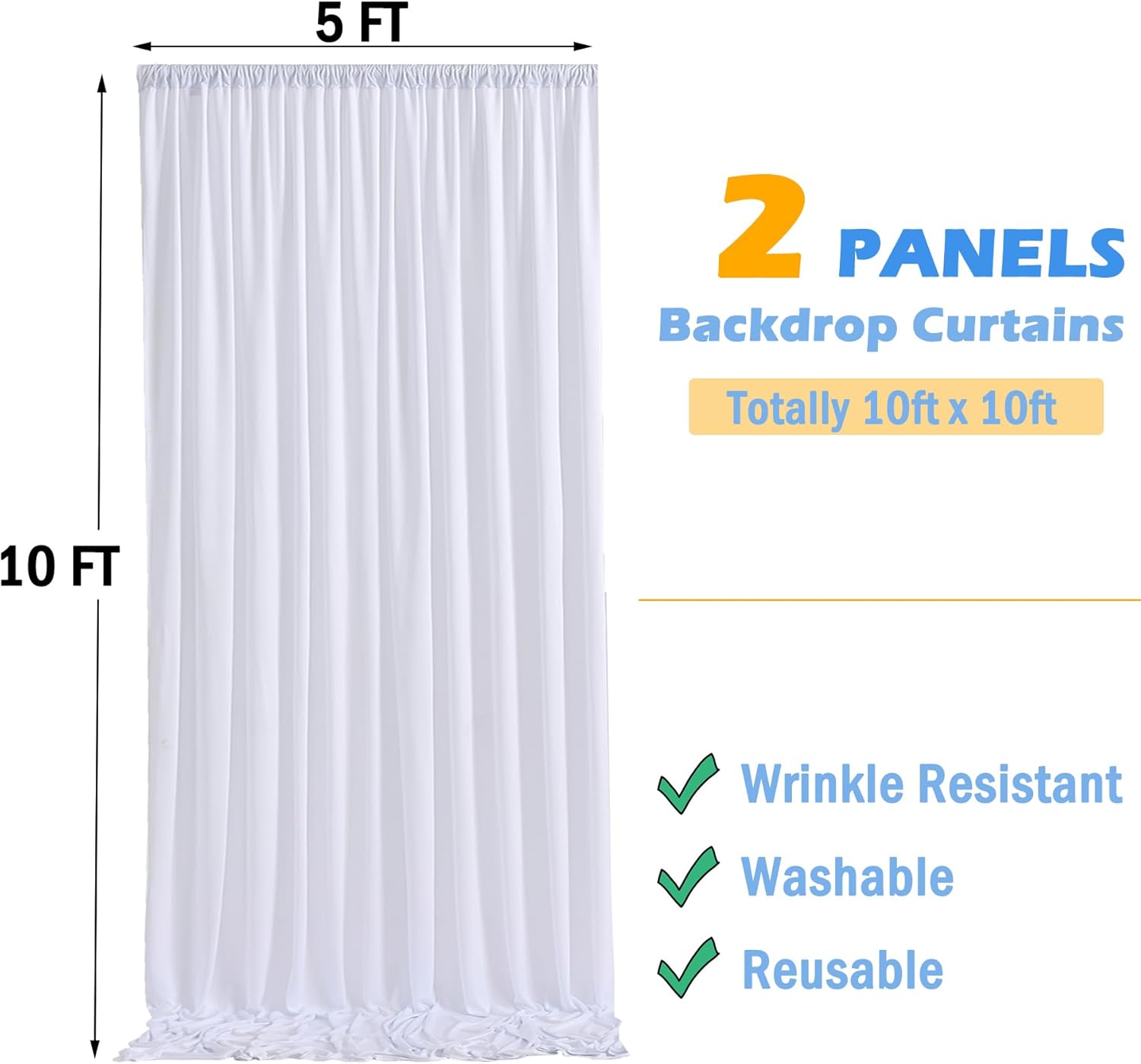 10x10ft Wrinkle Free White Backdrop Curtains for Party Background, 2 Panels 5x10ft Silky Polyester Photo Backdrop Drapes Back Drop Cloth for Wedding Birthday Photography Baby Shower Decor