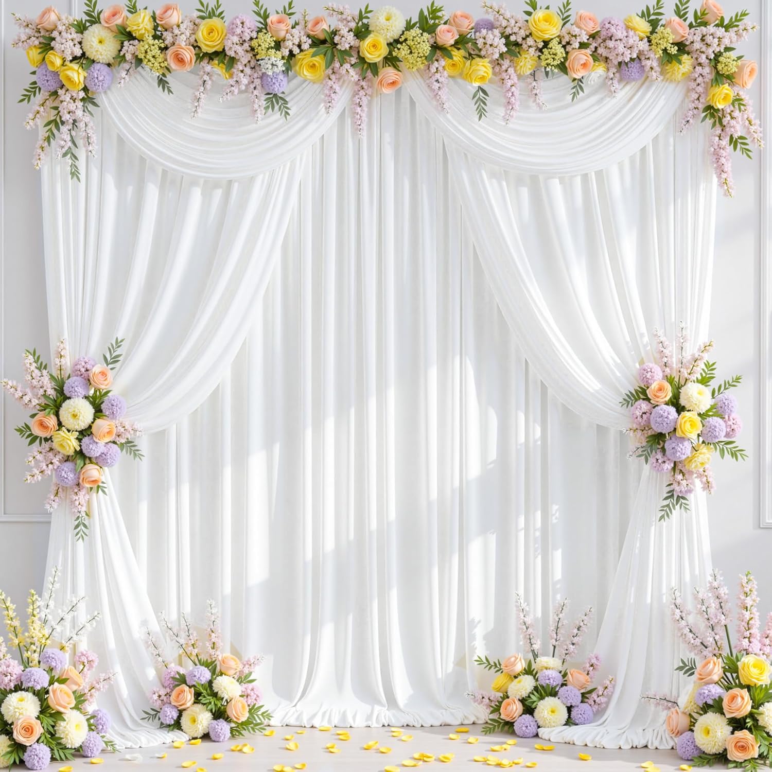 - 10ft Fabric Drape white Backdrop Curtain Wide Compatibility: Polyester photo drape white backdrop curtain can be used for parties, baby shower, wedding, birthday party, photography, bridal shower, gender reveal, zoom, princess party, engagement party, baptism, candy buffets, dessert table, sweet table, background, photo booths, photoshoot, ceremony, anniversary, graduation, home decorations, holiday party, stage curtain or just to mask unsightly areas