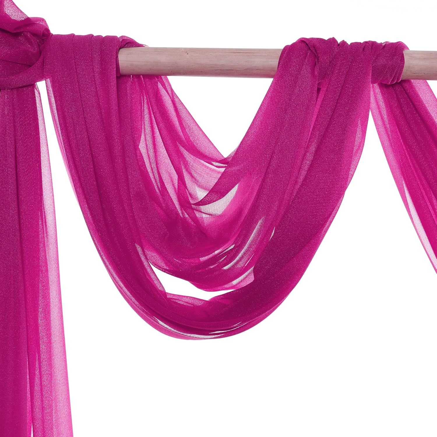 VDS Pack of 4 Panel (30 Inch X 20 Feet) Wedding Arch Draping Fabric Sheer Chiffon Fabric Drapery for Wedding Ceremony Reception Swag Backdrop Canopy Chuppah ARBO Altars Decoration (Magenta)