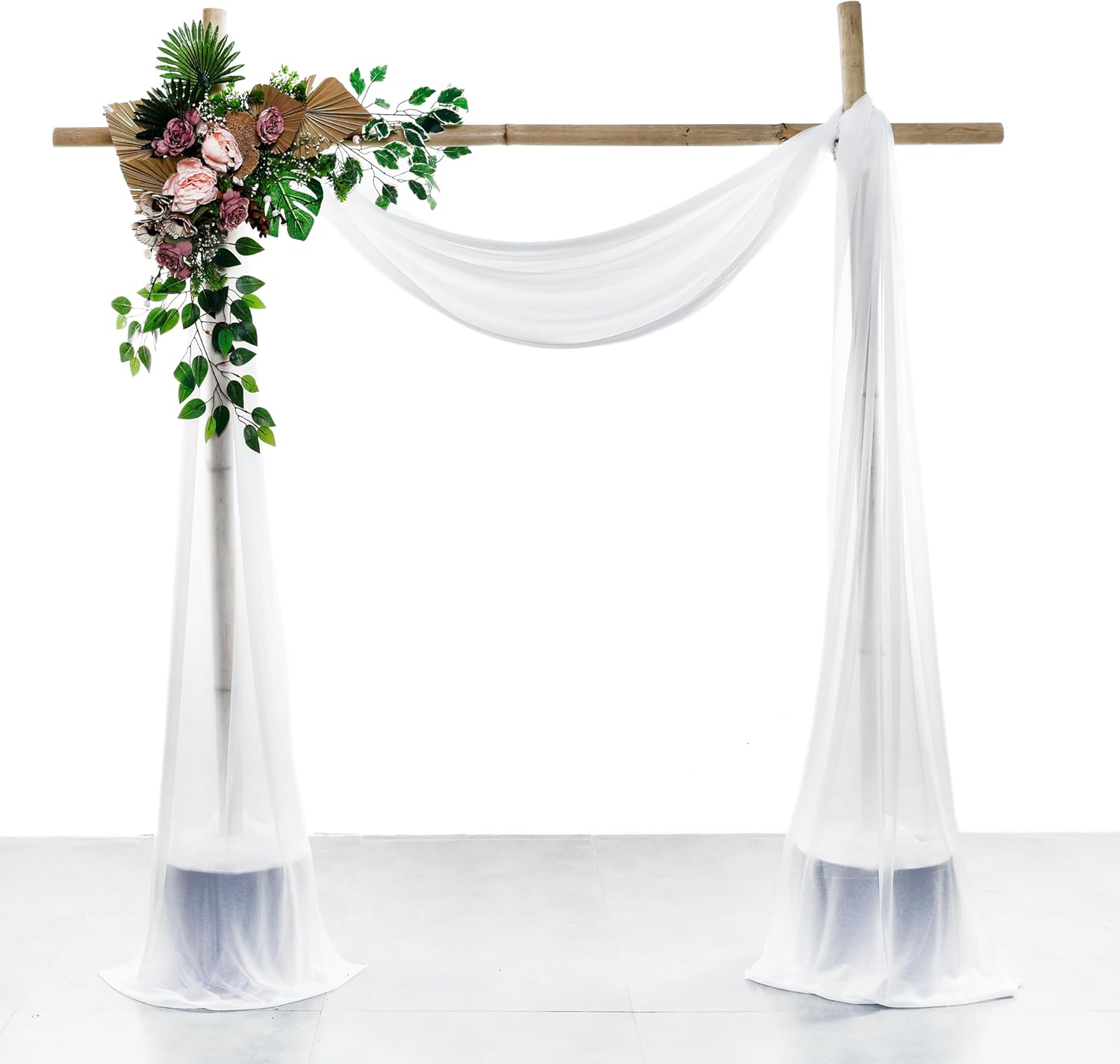 VDS Pack of 3 Panel (30 Inch X 20 Feet) Wedding Arch Draping Fabric Sheer Chiffon Fabric Drapery for Wedding Ceremony Reception Swag Backdrop Canopy Chuppah ARBO Altars Decoration (White)