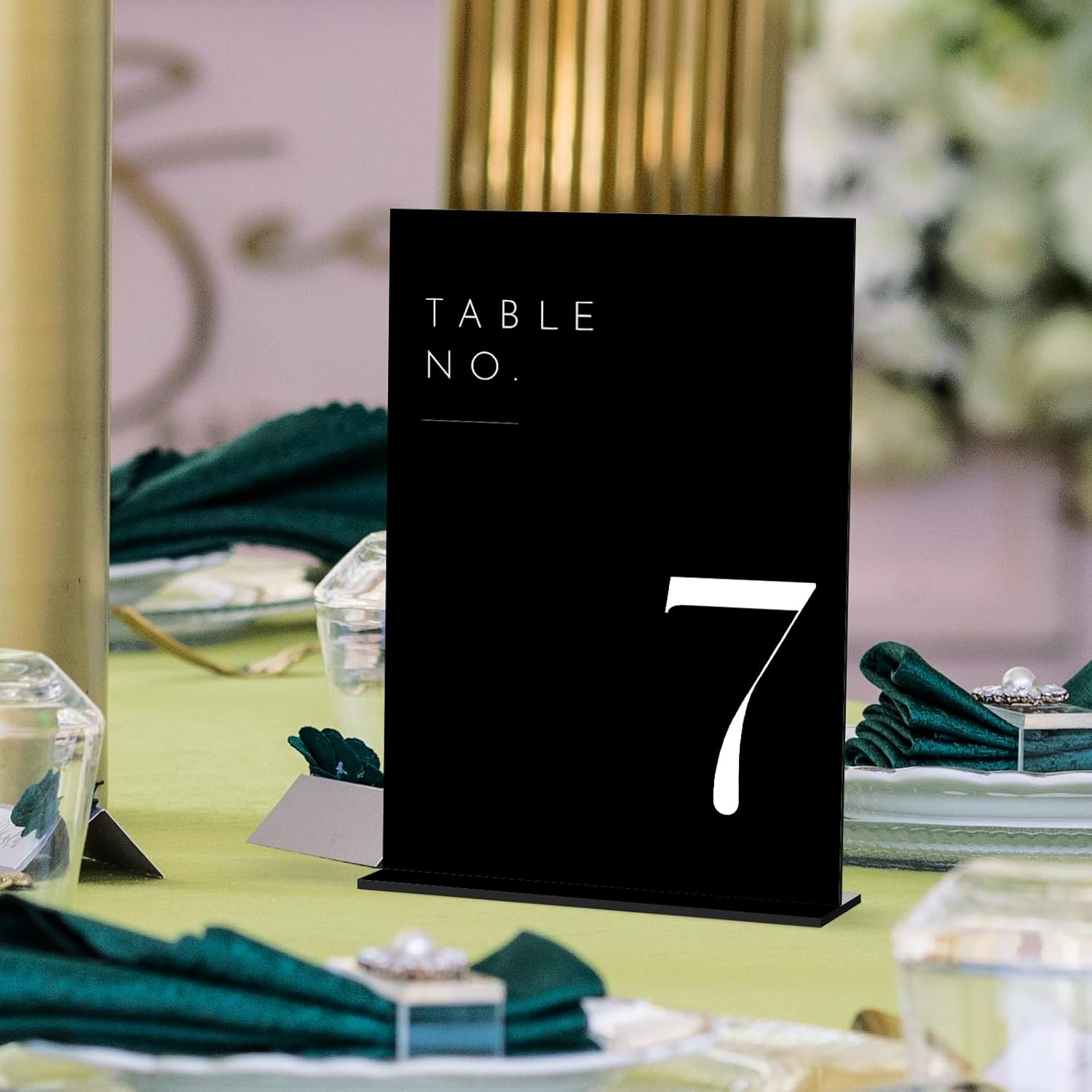 - MINIMALISTIC STYLE DESIGN: These modern minimalistic acrylic table numbers are the perfect touch to add to your wedding. We love the sleek, clean lines of these black wedding table numbers, they are a beautiful wedding table centerpieces, perfect for displaying on tabletop centerpiece.