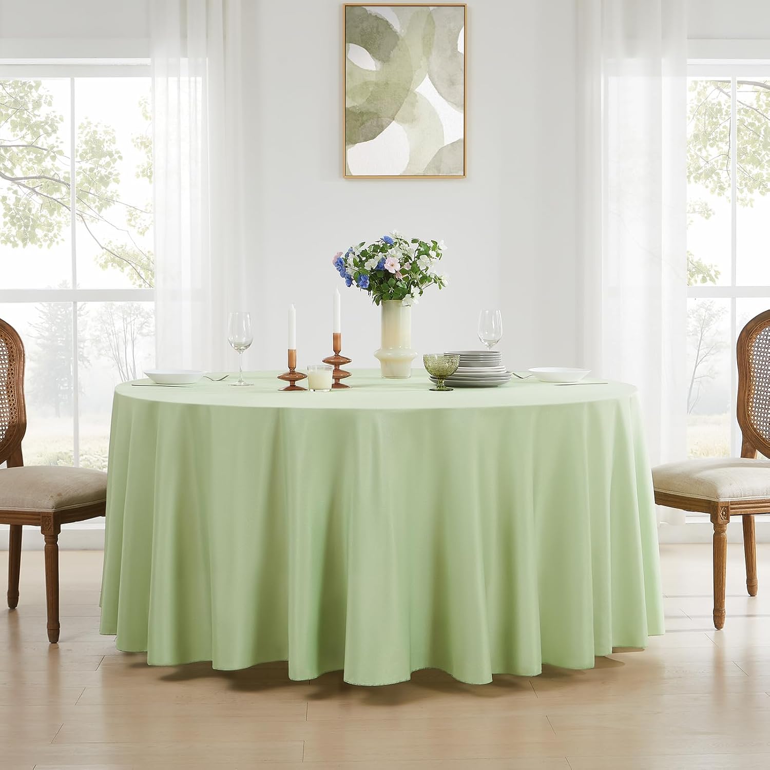 - Multipurpose: Our round sage green tablecloths are not only suitable for parties, picnics, weddings, banquets, and other scenes, but also can be used for decorative purposes, you can do crafts or artwork on them with your children, and also can be used as a placemat for fruits and drinks