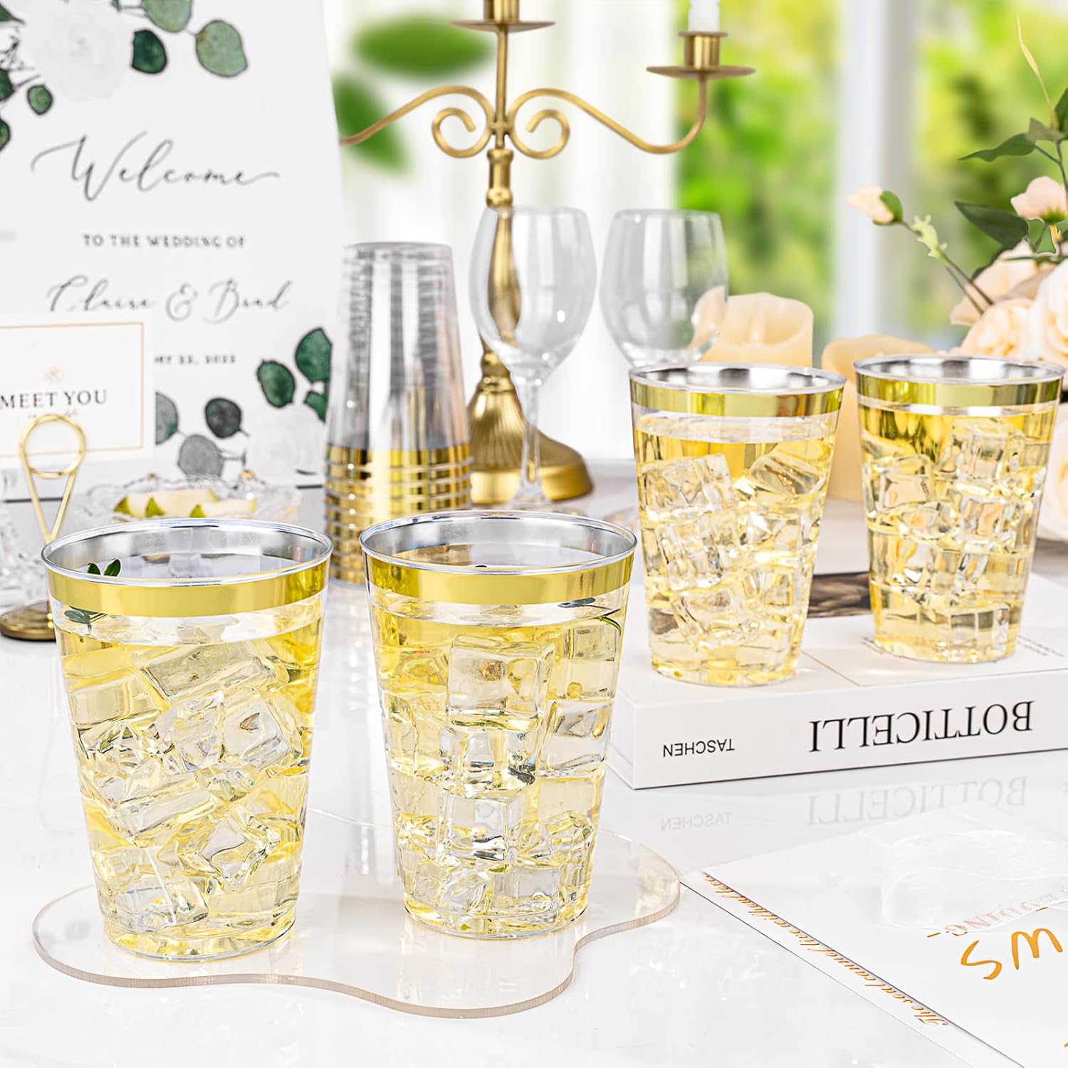 - Glamorous Design: These clear cups with glitter are a real treat! These gold plastic cups add a touch of glamour to any party or family gathering. Perfect for making your drinks look extra special