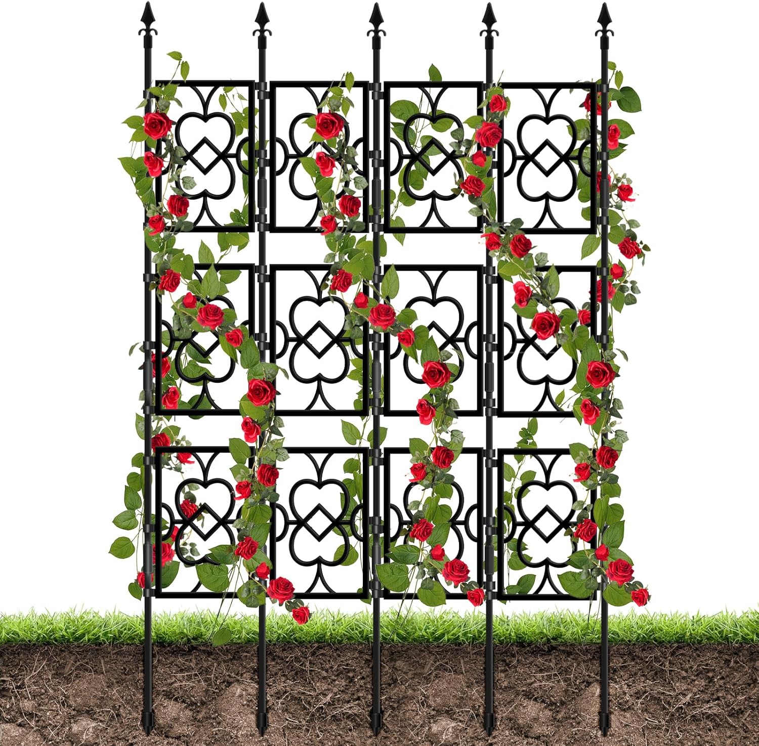 - 4 Sets of 5.5FT Trellis: The garden trellis set with a distinctive heart-shaped grid design, more climbing space available to provide a free growing environment for plants. Both indoor and outdoor, allowing your greenery to stretch freely and flourish.