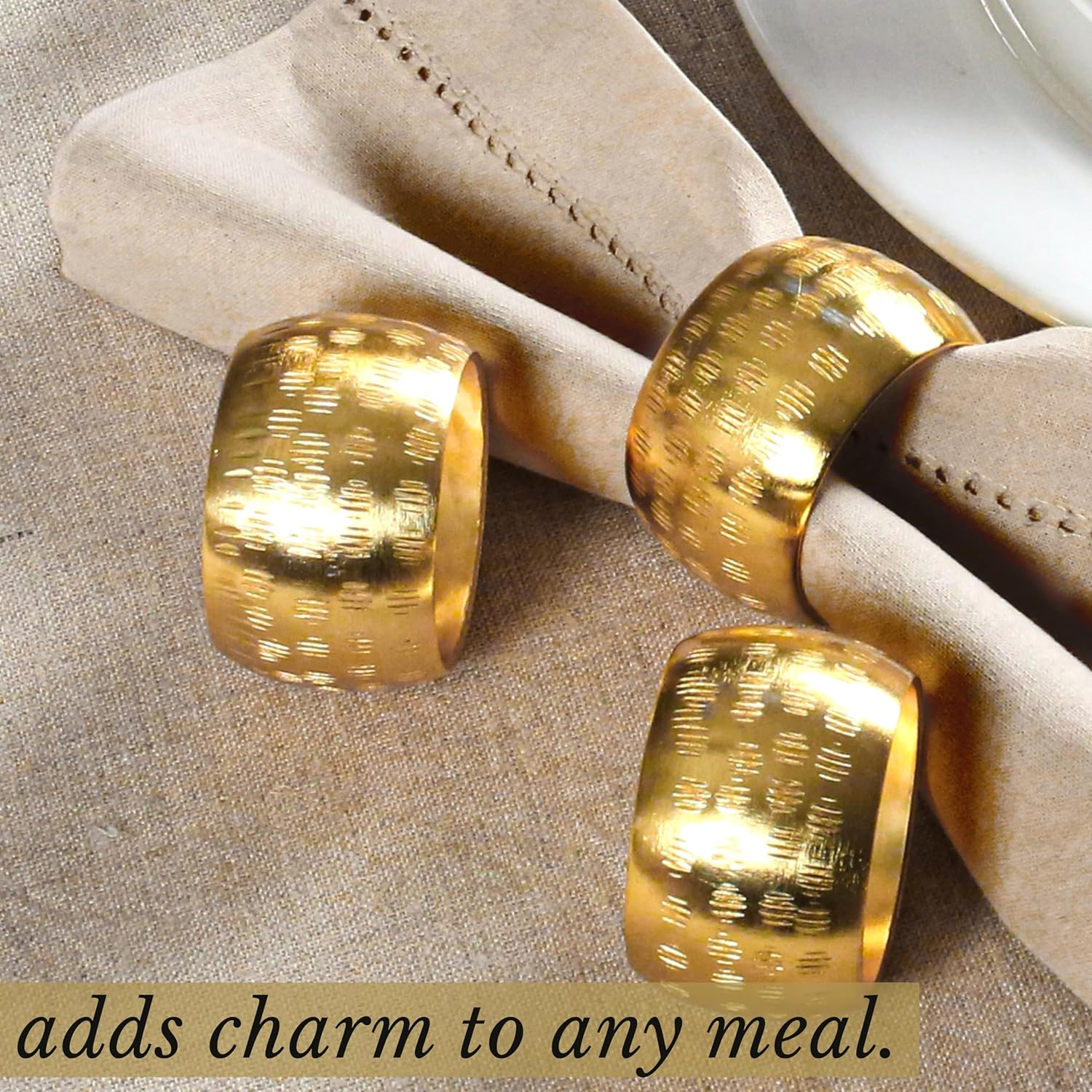 Napkin Rings Set of 12, Metal Napkin Holder Cuffs for Dinner Table Décor, Round Textured Farmhouse Modern Serviette Rings for Christmas, Weddings, Receptions, Daily Use, Gold - ALPHA Living HOME