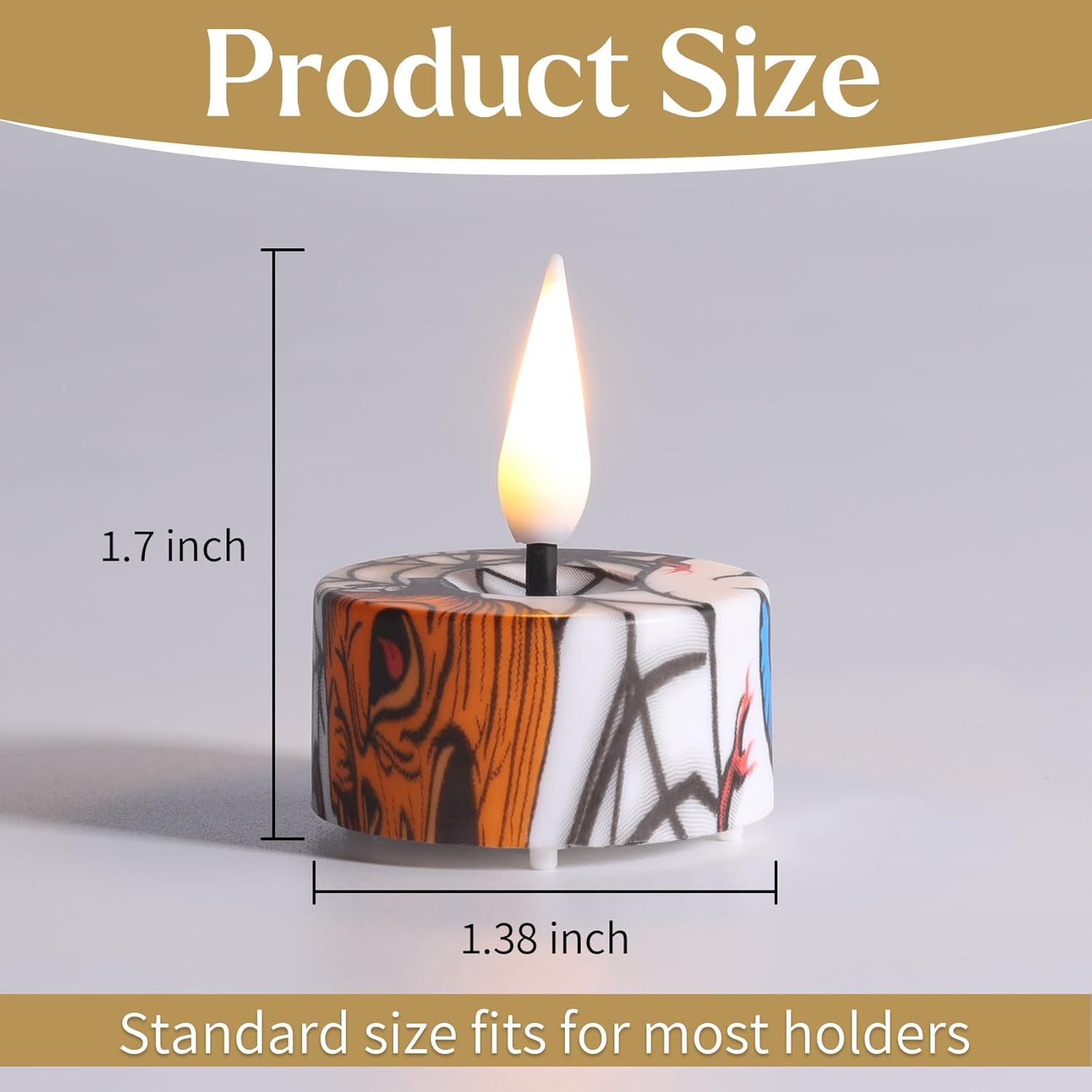 - Realistic & Bright: each tealight measures Φ 1.38" by H 1.57", made by premium plastic and simulated black wick flame, giving off a warm white glow, the reality will fool your eyes especially lit