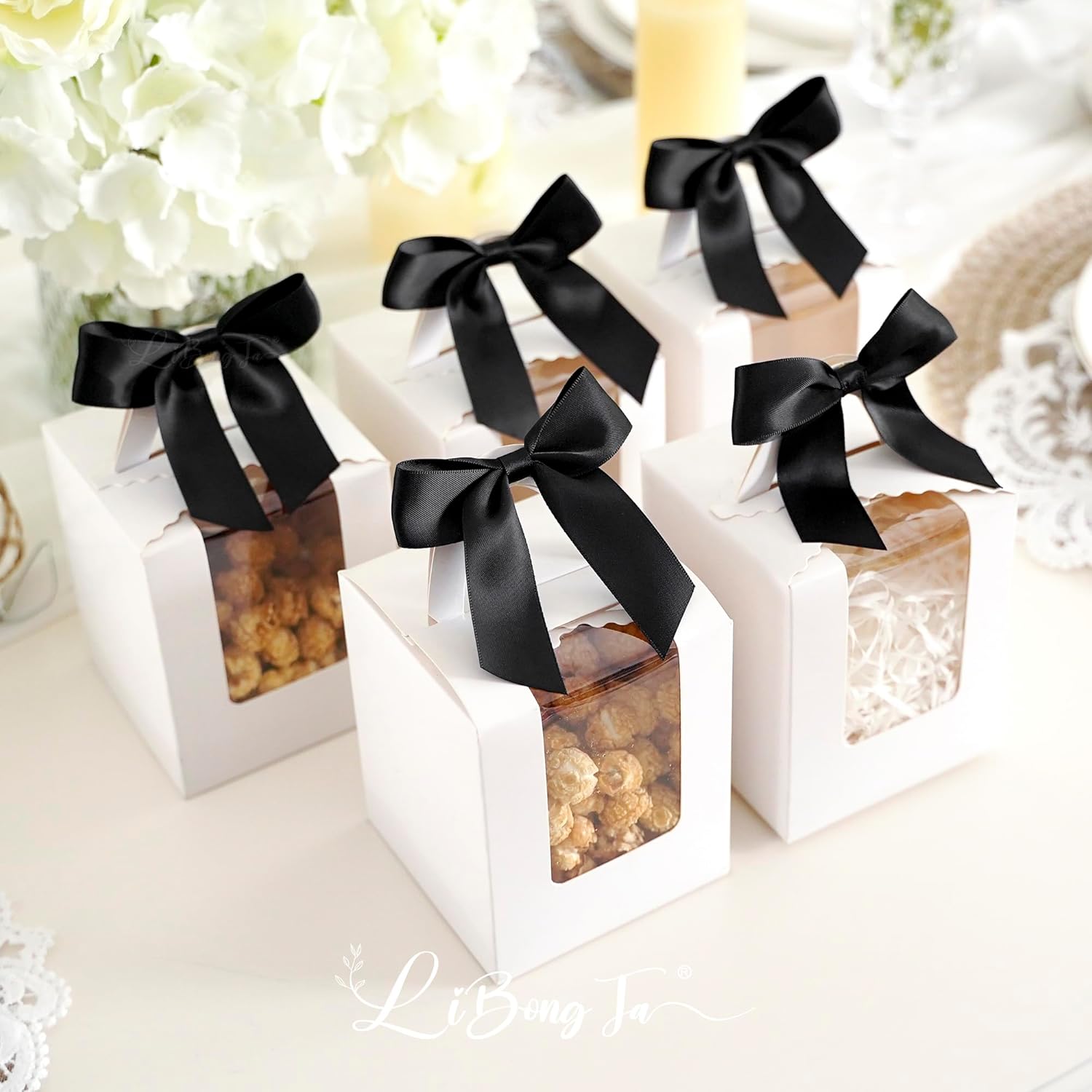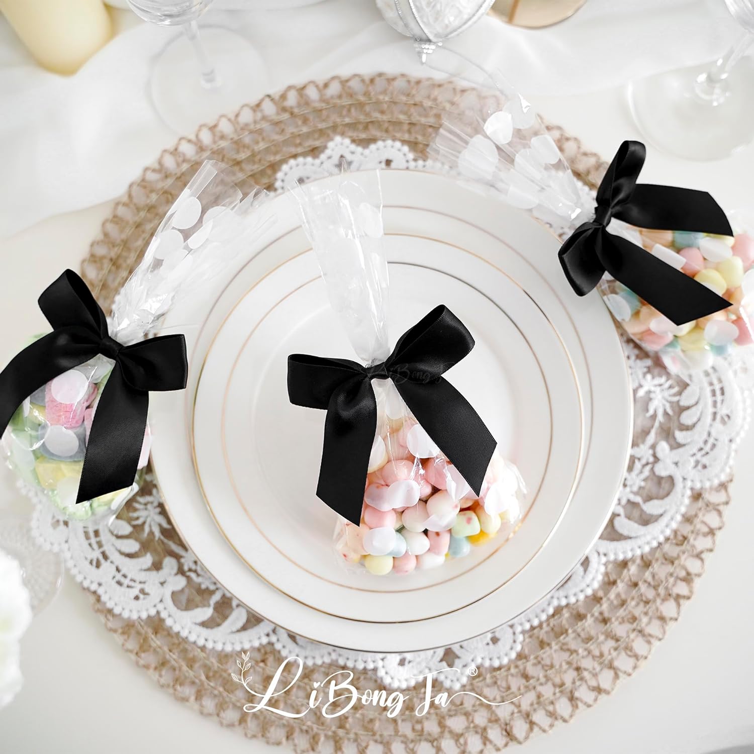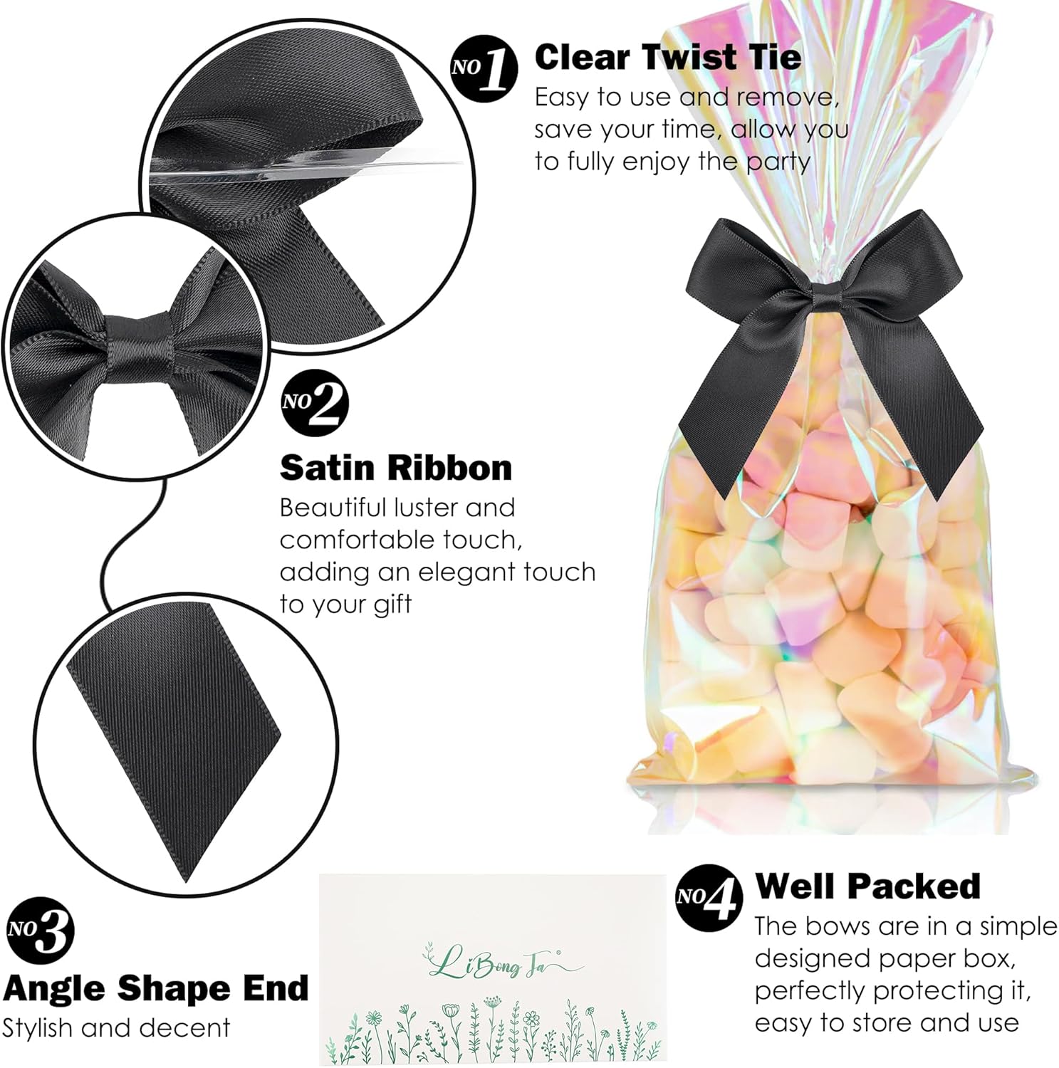 3.5" Black Bow Satin Pre-Tied Bows for Gift Wrapping, Small Bows for Crafts, Premade Bows, Candy Apple Bows, Twist Tie Bows for Cake Decorating, Party Favor, Wedding Decoration-36 Counts