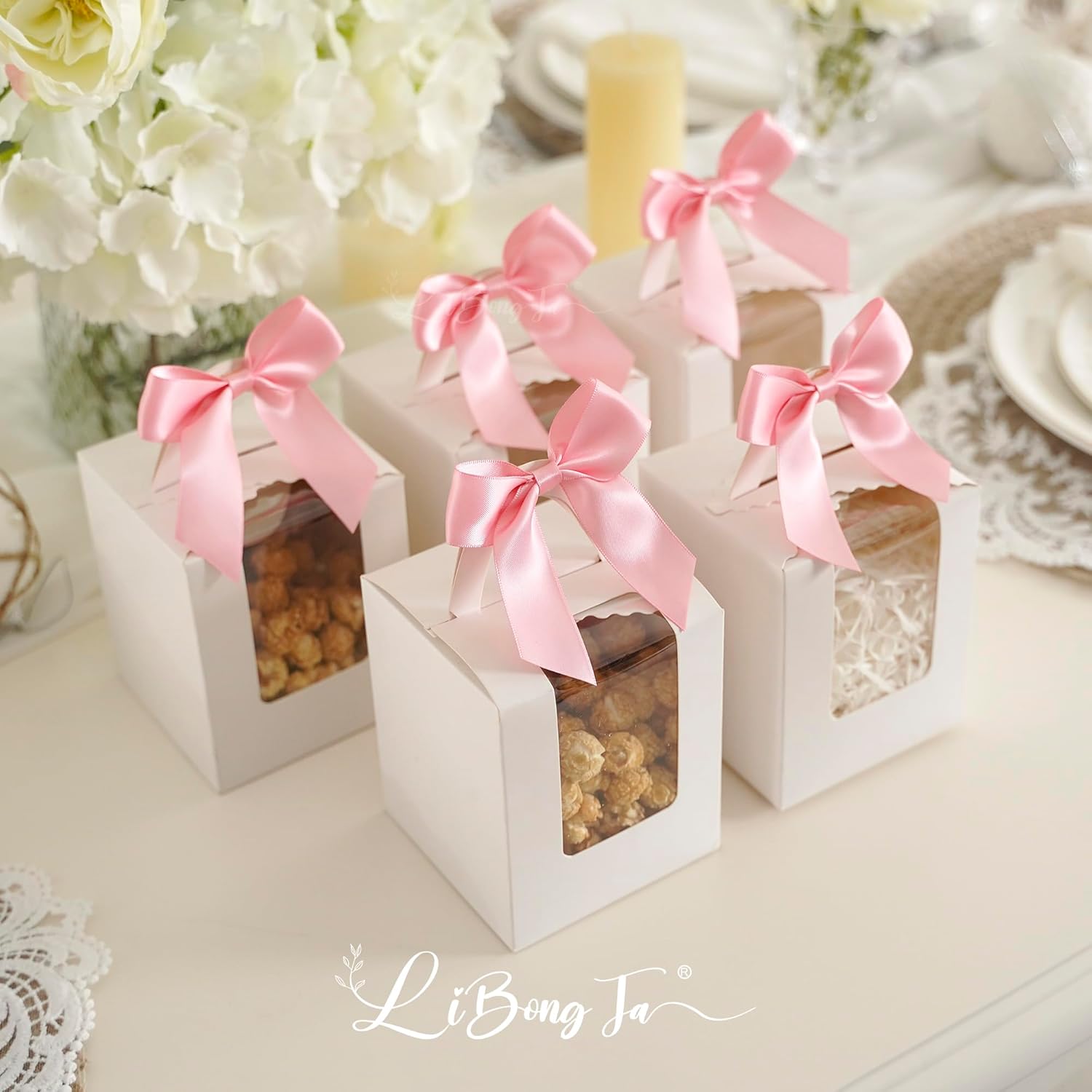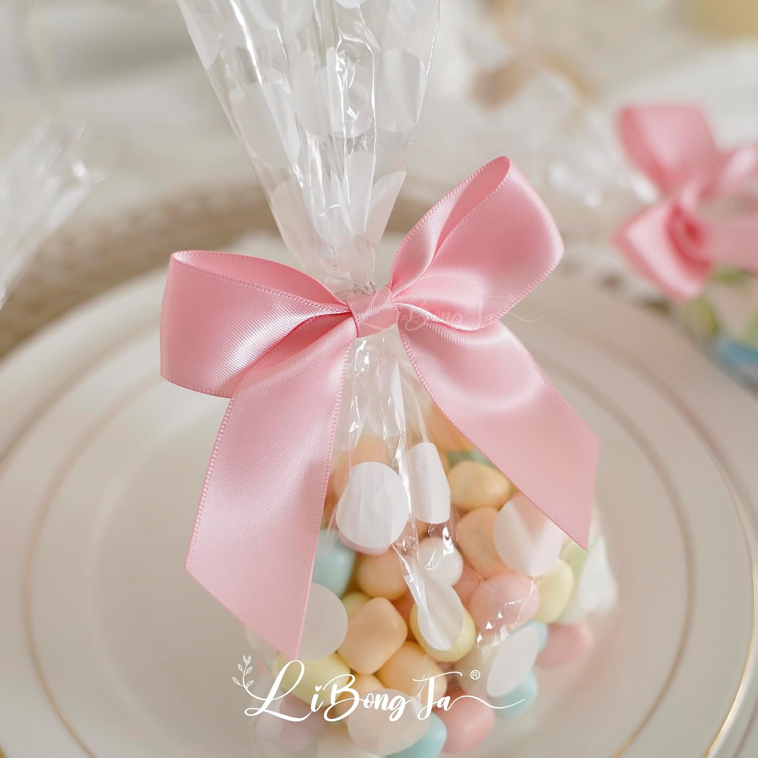 3.5" Pink Bow Satin Pre-Tied Bows for Gift Wrapping, Small Bows for Crafts, Premade Bows, Candy Apple Bows, Twist Tie Bows for Cake Decorating, Party Favor, Wedding Decoration-36 Counts