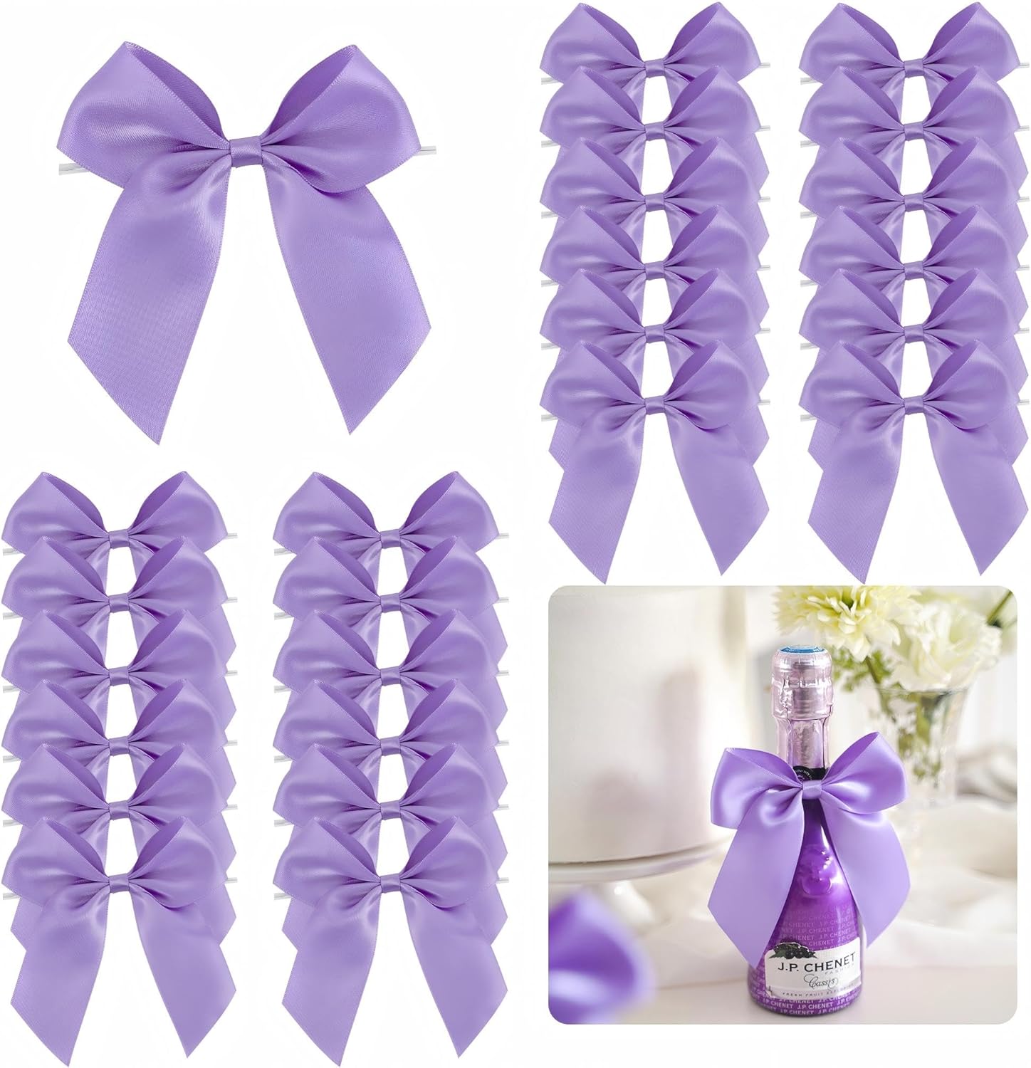 4.5" Satin Ribbon Light Purple Bows for Gift Wrapping, Twist Tie Bows, Cute Bows for Crafts, Party Favors, Premade Bows Pre-Tied Decorative Bows for Flower Bouquets Candy Apple Bows-24 Counts