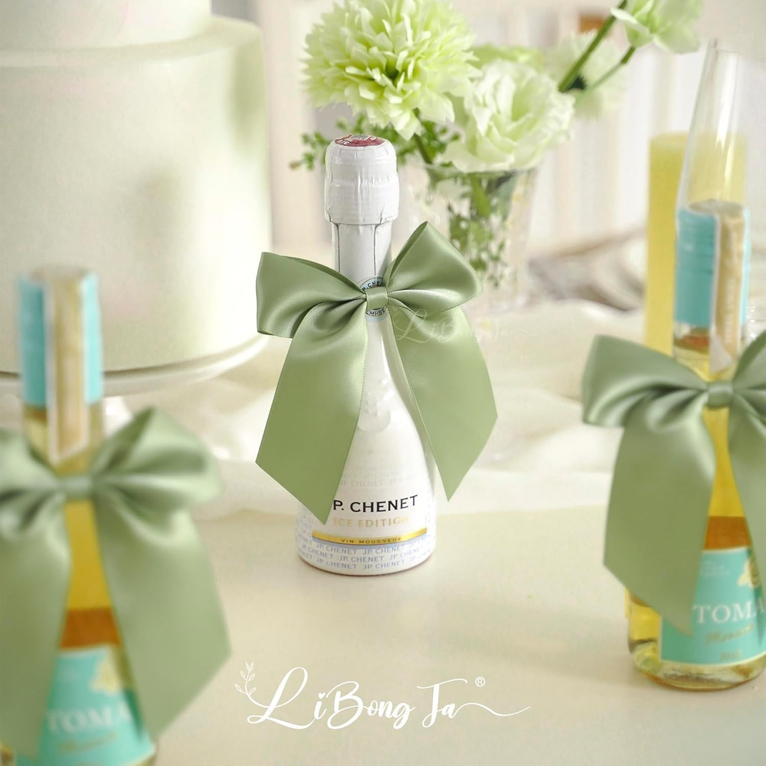 4.5" Satin Ribbon Sage Green Bows for Gift Wrapping, Twist Tie Bows, Cute Bows for Crafts, Party Favors, Premade Bows Pre-Tied Decorative Bows for Flower Bouquets Candy Apple Bows-24 Counts