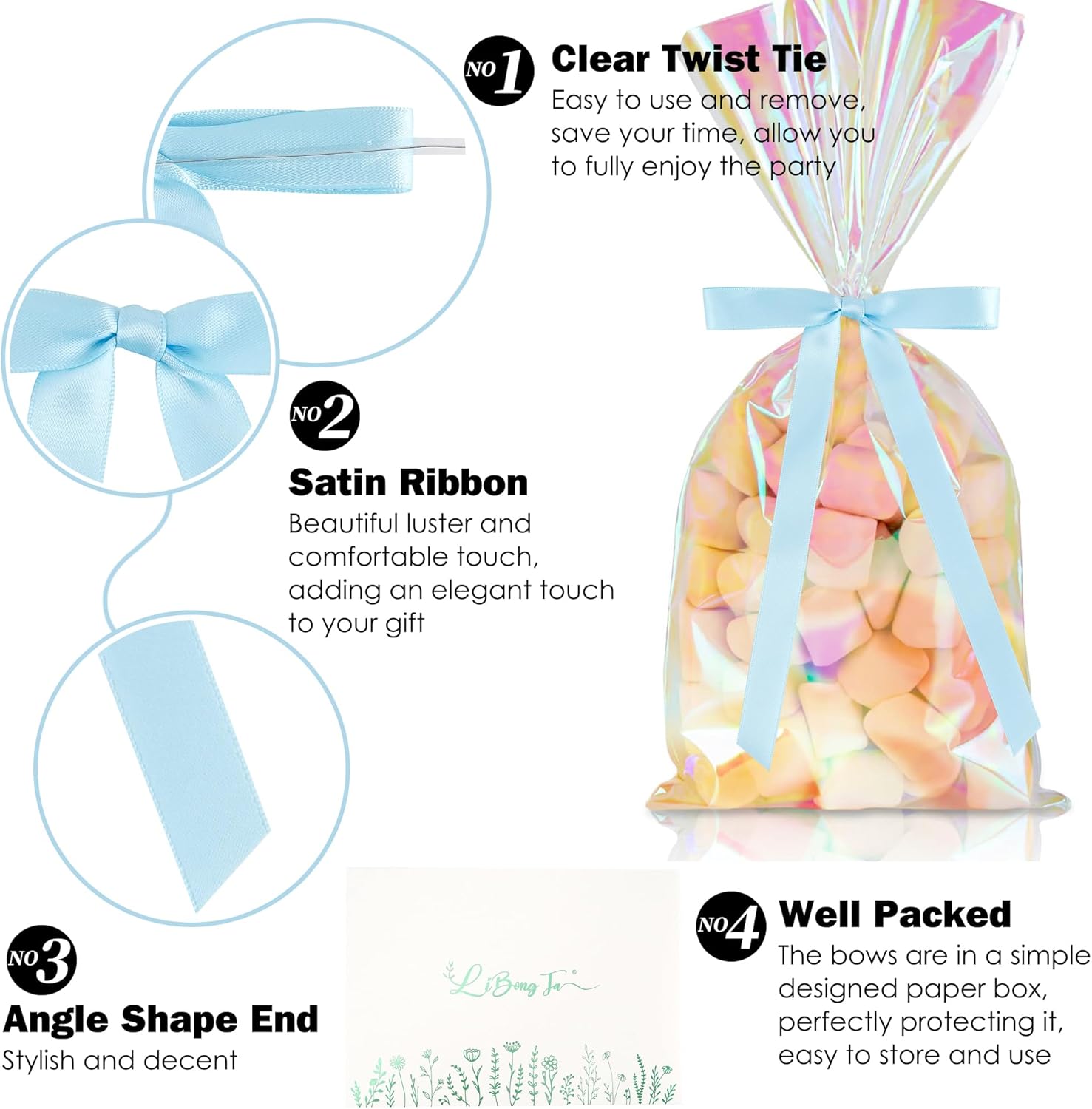 50 PCs Blue Bow 5 Inch Long Tail Bows for Gift Wrapping, Easter Bow Party Decorations, Twist Tie Bows, Satin Bows for Crafts, Premade Bows for Presents, Treat Bags, Bottles, Cakes