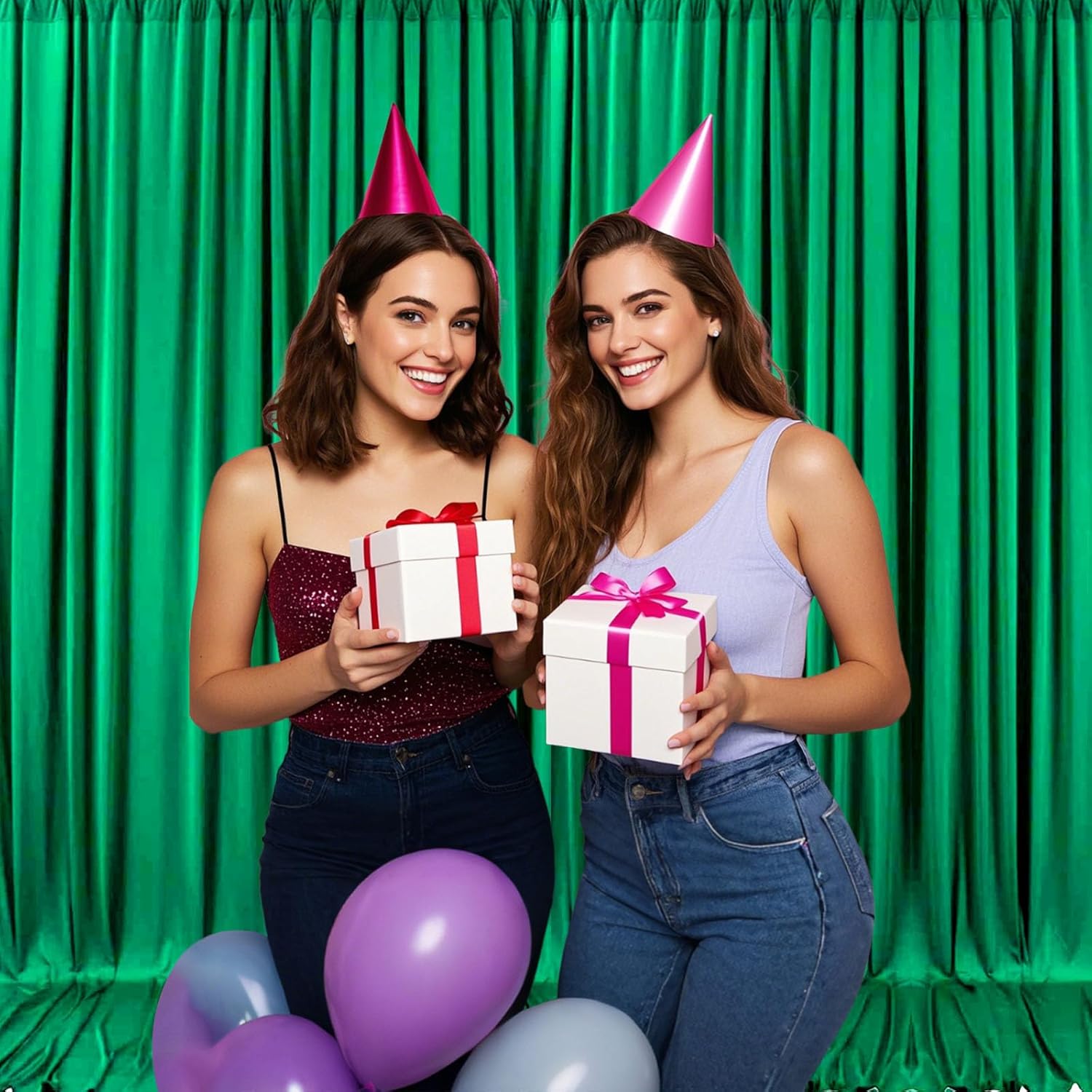 10ft x 10ft Deep Green Backdrop Curtains for Parties, Fabric Satin Background Curtain with Rod Pockets for Weddings, Birthday, Baby Shower, Photography, Graduation Party Backdrop Drapes, 2 Panels