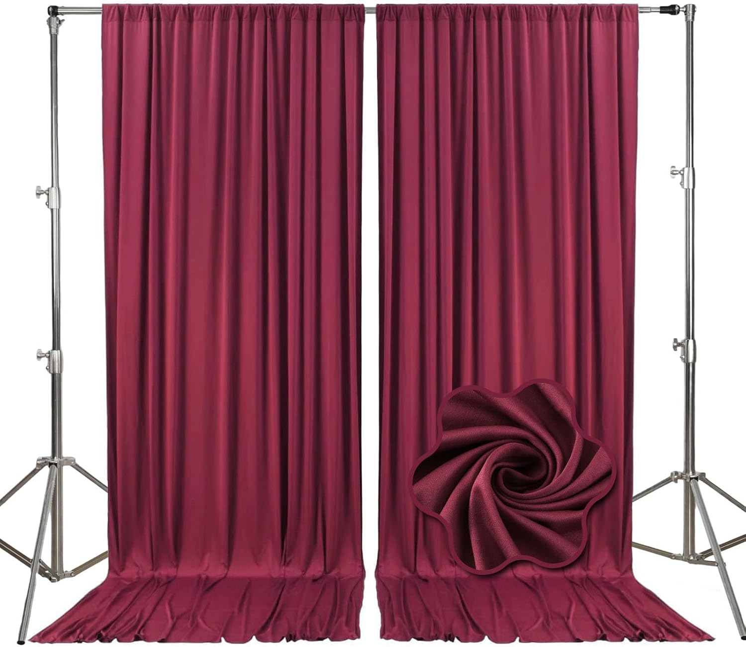 10ft x 10ft Burgundy Backdrop Curtains for Parties, Fabric Satin Background Curtain with Rod Pockets for Weddings, Birthday, Baby Shower, Photography, Graduation Party Backdrop Drapes, 2 Panels
