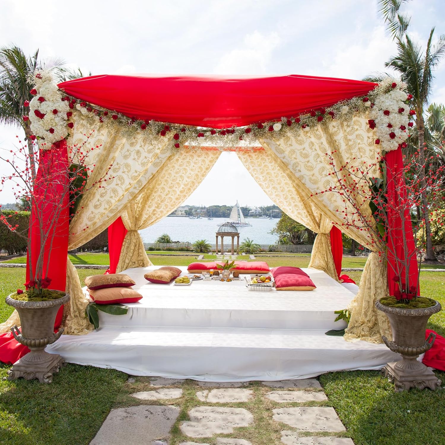 10ft x 10ft Red Backdrop Curtains for Parties, Fabric Satin Background Curtain with Rod Pockets for Weddings, Birthday, Baby Shower, Photography, Graduation Party Backdrop Drapes, 2 Panels