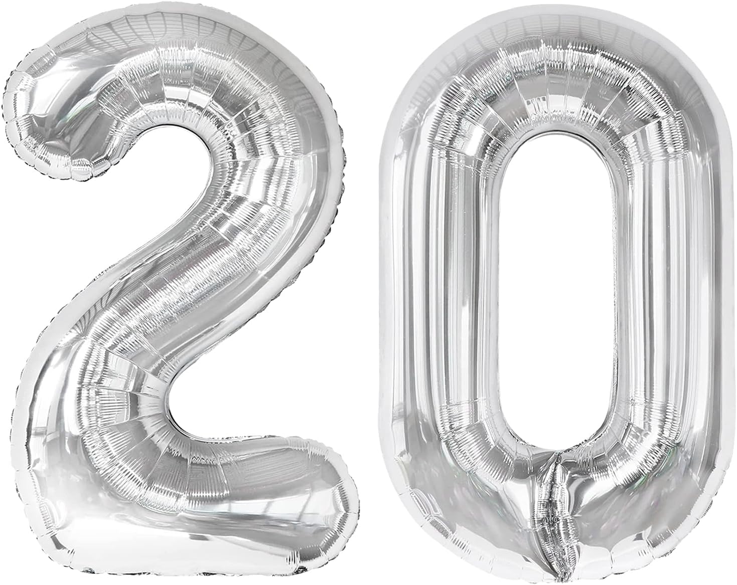 Silver 40 Inch 20 Number Balloons, 20 Decorations for 20 Birthday, Foil Giant Birthday Graduations Anniversary Party Balloons