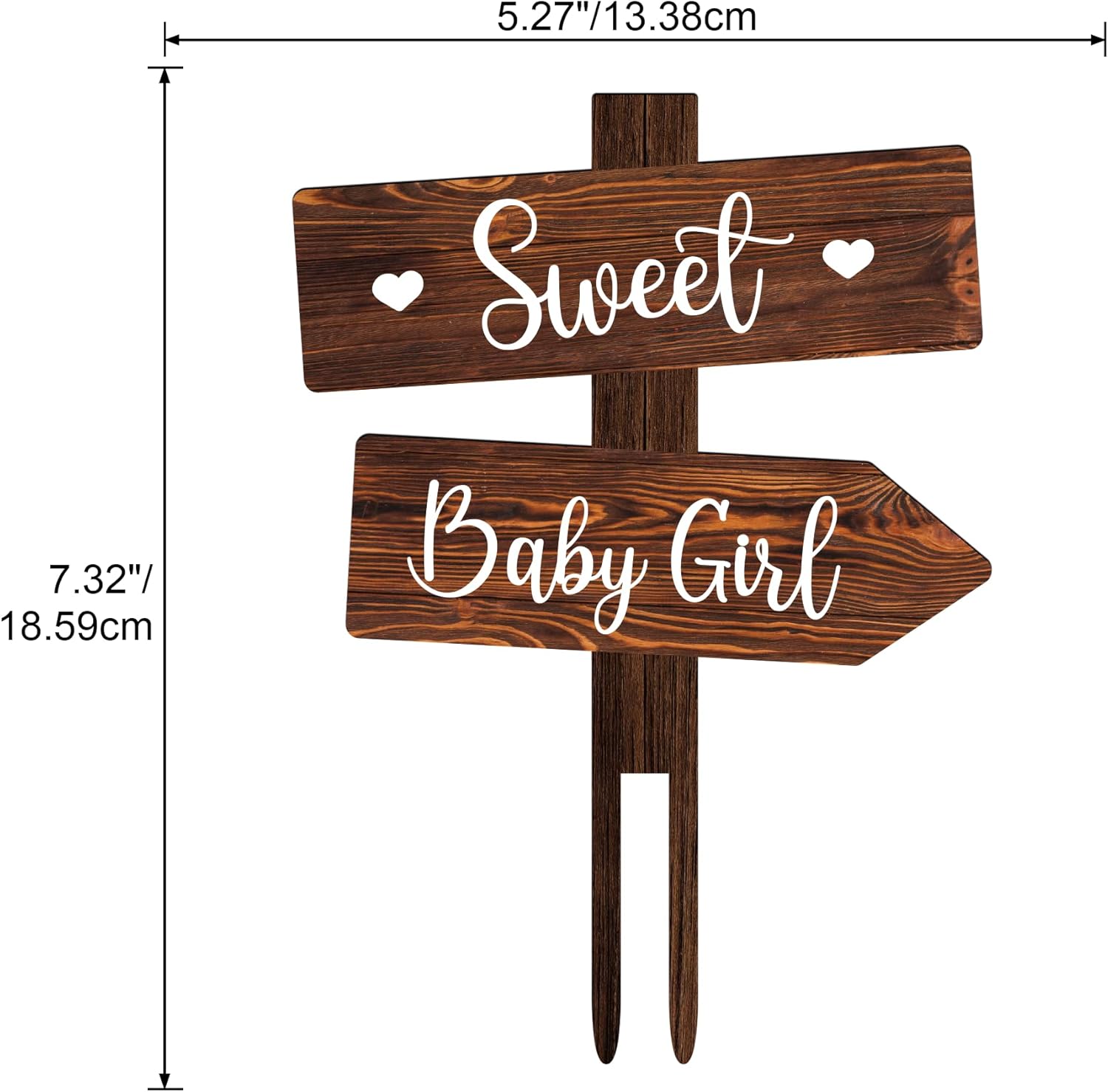 Rustic Sweet Baby Girl Cake Topper in Wood Baby Shower Gender Reveal Party Cake Decoration