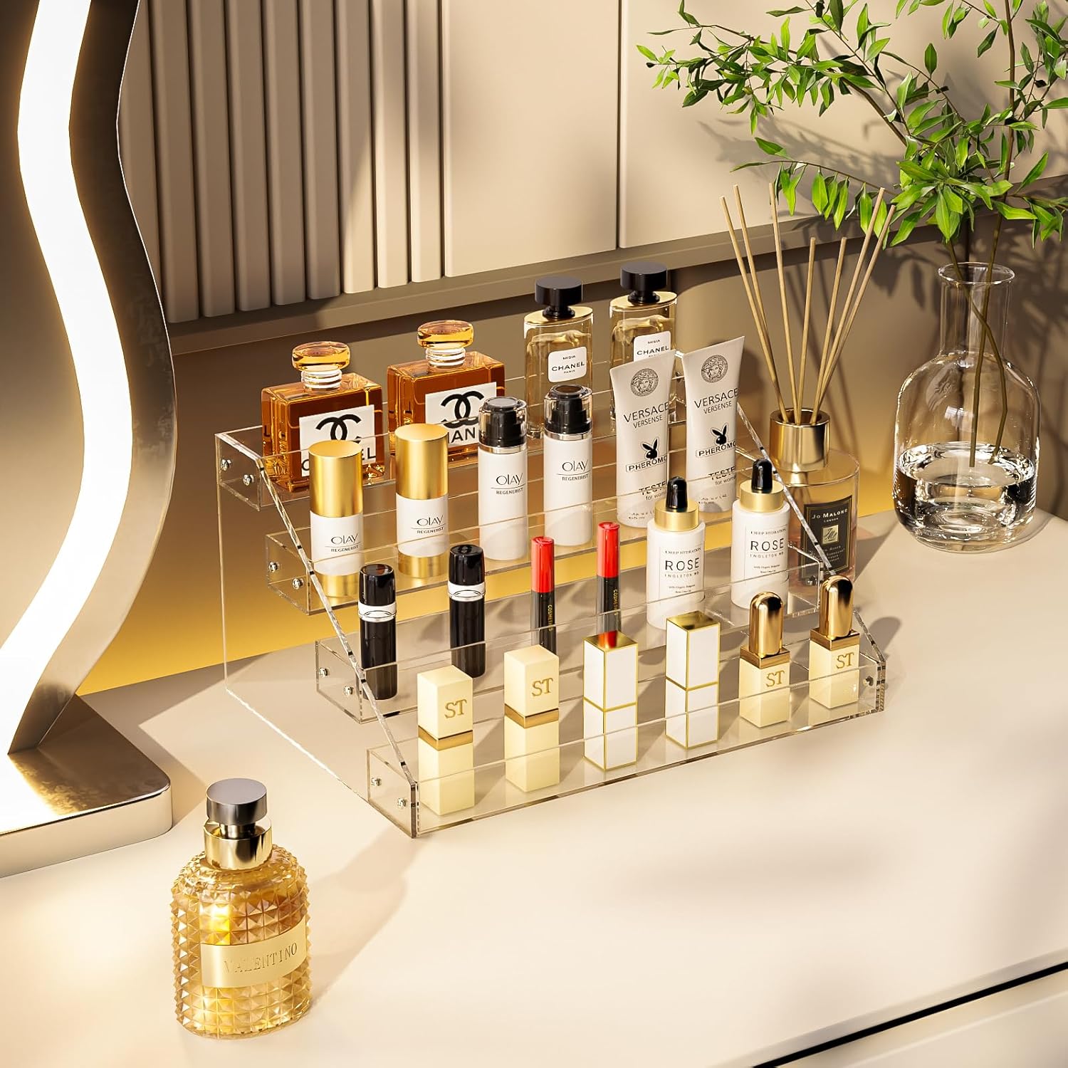 - 【Acrylic Display Stands】: This acrylic perfume organizer is made of high-quality acrylic material, which is durable and has a strong load-bearing capacity, which can perfectly display what you want. The clear acrylic display riser shelf adopts the design of triangular brackets on both sides and embedded screws, which is flat and stable, and it does not affect the placement of items.
