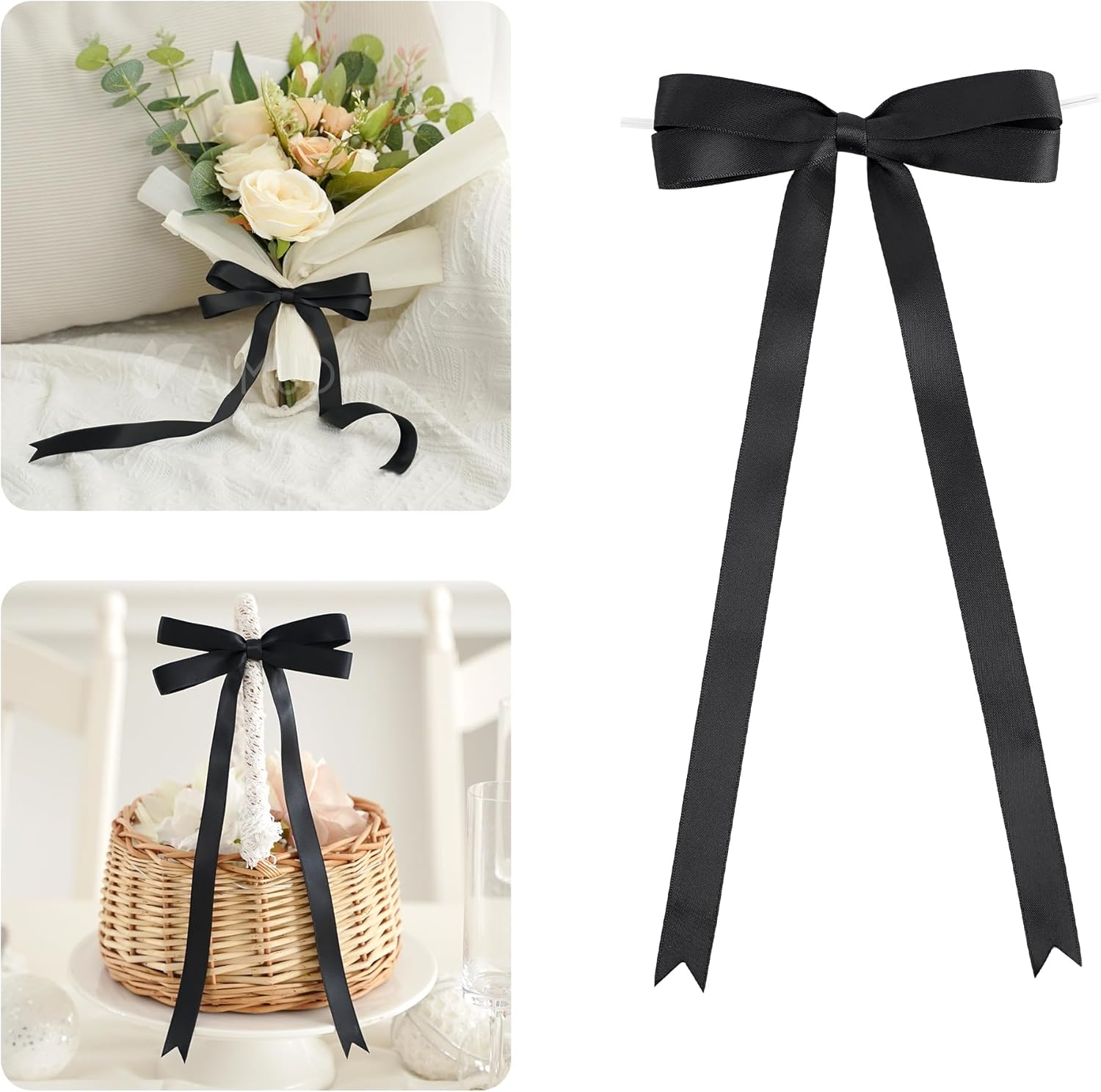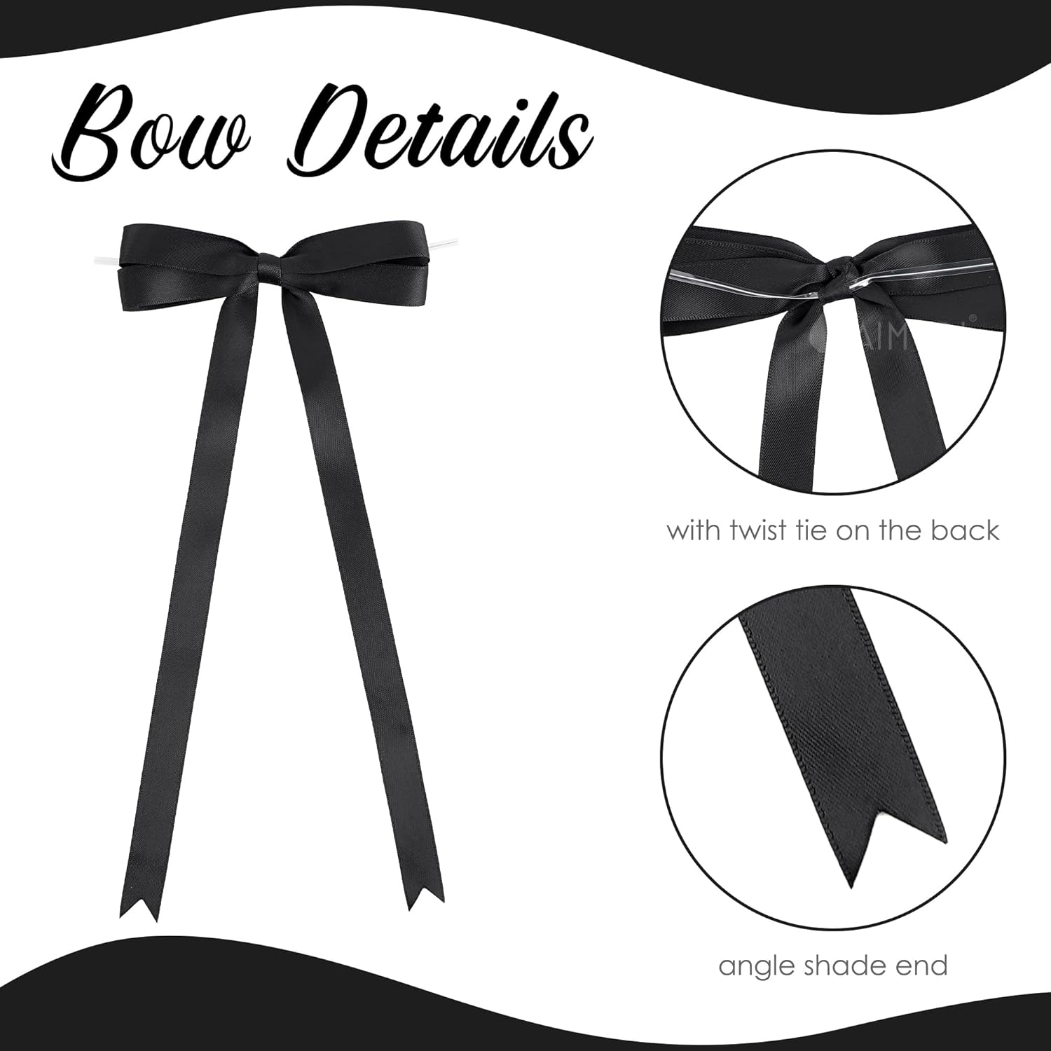AIMUDI Black Bow 5 × 10" Satin Bow for Gift Wrapping Twist Tie Bows Premade Ribbon Bows for Bouquets Invitations Baskets Crafts Wreaths Wedding Birthday Baby Shower Party Decorations, 36 PCs
