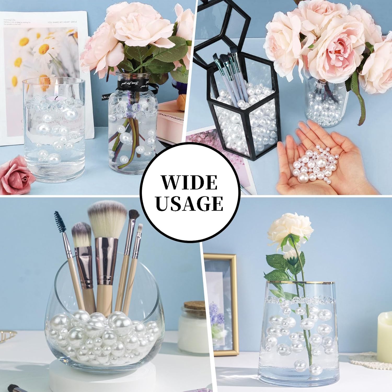- 【Beads for Decoration】fake pearls are ideal as vase fillers, the pearl decor surprises your family, and friends, Vase Beads for centerpieces are a great romantic and simply elegant, decorate your floral arrangements, use Vase Beads for vases no hole as vase fillers, candle plate decorations, give you a sense of beauty and magnificence. decorative pearls perfect for wedding and family graduation bridal shower decorations; birthday, holiday, DIY Crafts.