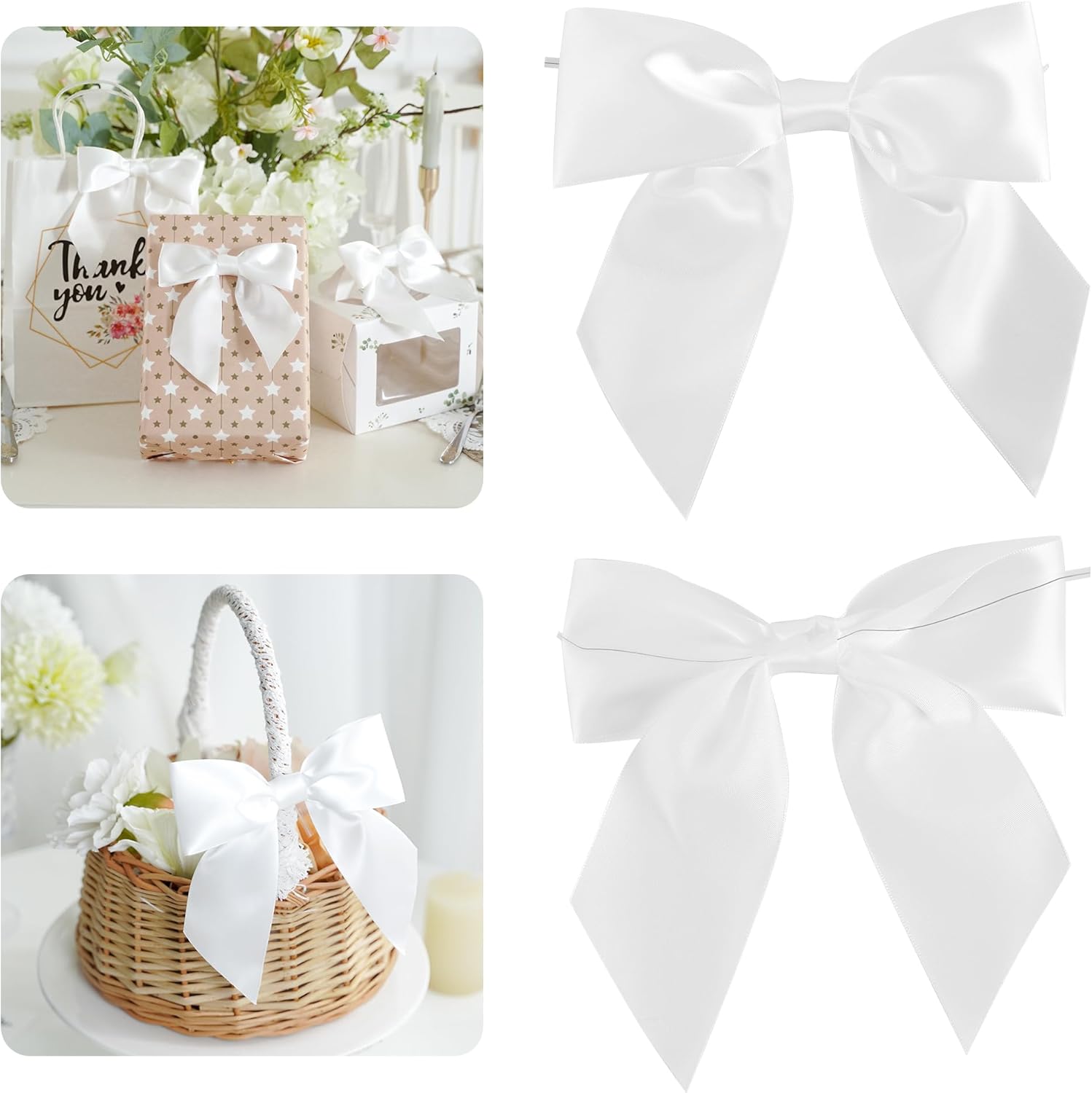 AIMUDI White Satin Bows 5.5" Bows for Gift Wrapping Satin Twist Tie Bows Premade Ribbon Bows for Treat Bags Invitations Baskets Crafts Wreaths Wedding Birthday Baby Shower Party Decorations, 24 PCs