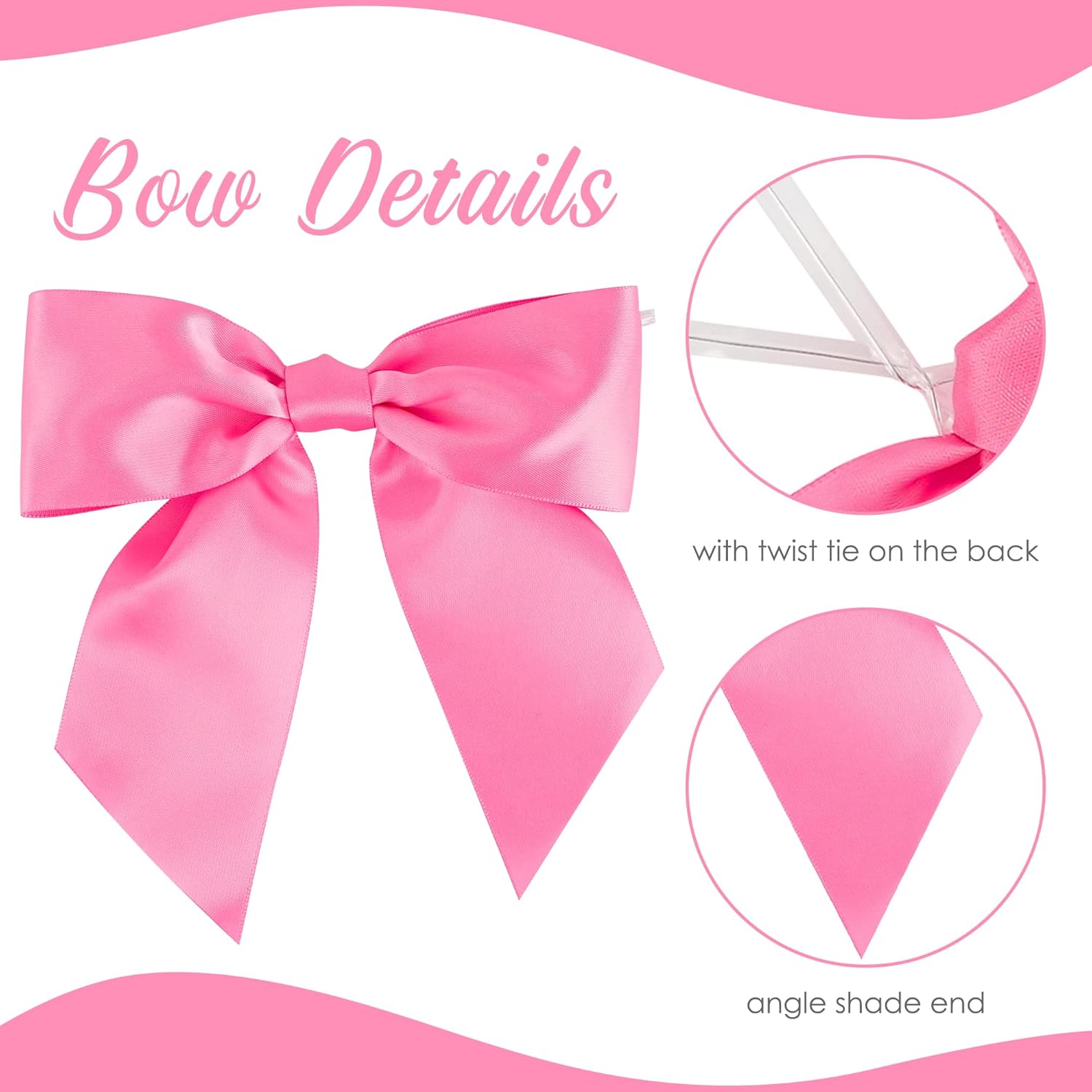 AIMUDI Hot Pink Satin Bows 5.5" Bows for Gift Wrapping Satin Twist Tie Bows Premade Ribbon Bows for Treat Bags Invitations Baskets Crafts Wedding Birthday Baby Shower Spring Decorations, 24 PCs
