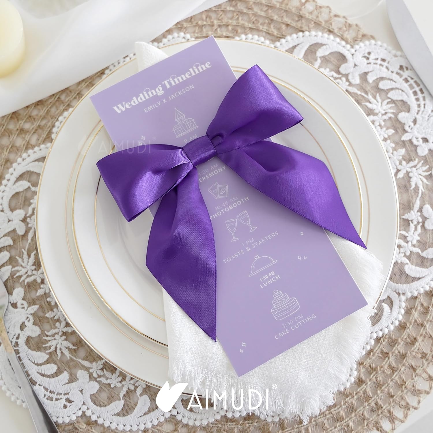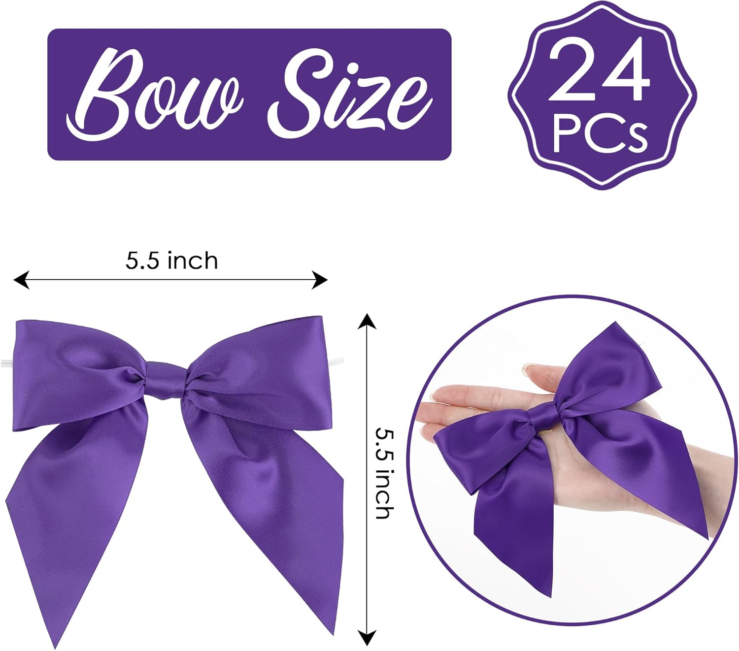 AIMUDI Purple Satin Bows 5.5" Bows for Gift Wrapping Satin Twist Tie Bows Premade Ribbon Bows for Treat Bags Invitations Baskets Crafts Wreaths Wedding Birthday Baby Shower Party Decorations, 24 PCs
