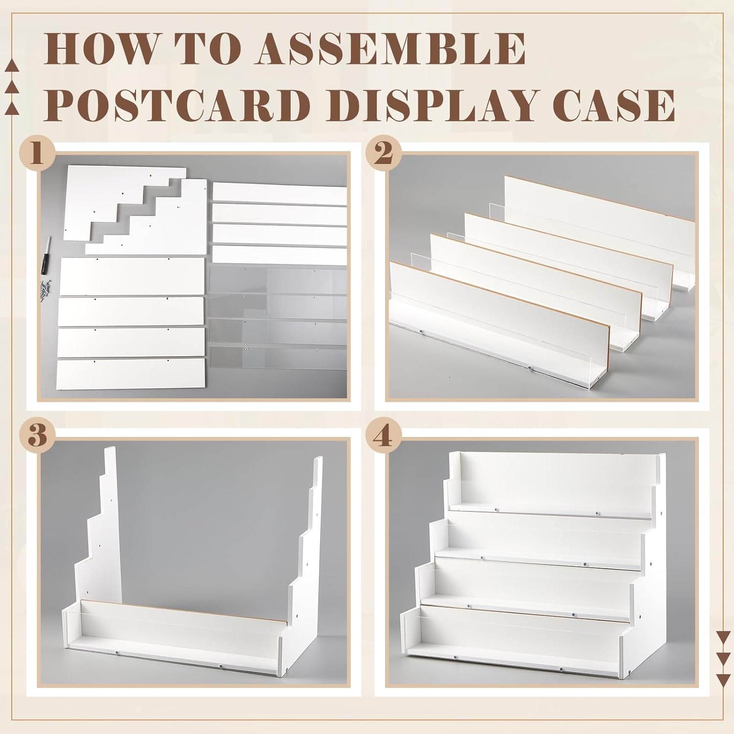 - Simple Assembly: with our greeting card holder, your assembly worries are over; Simply remove the protective acrylic surface coating and use the provided screws and instructions to set it up in just a few minutes, but still pay attention to tighten the screws to avoid affecting your experience