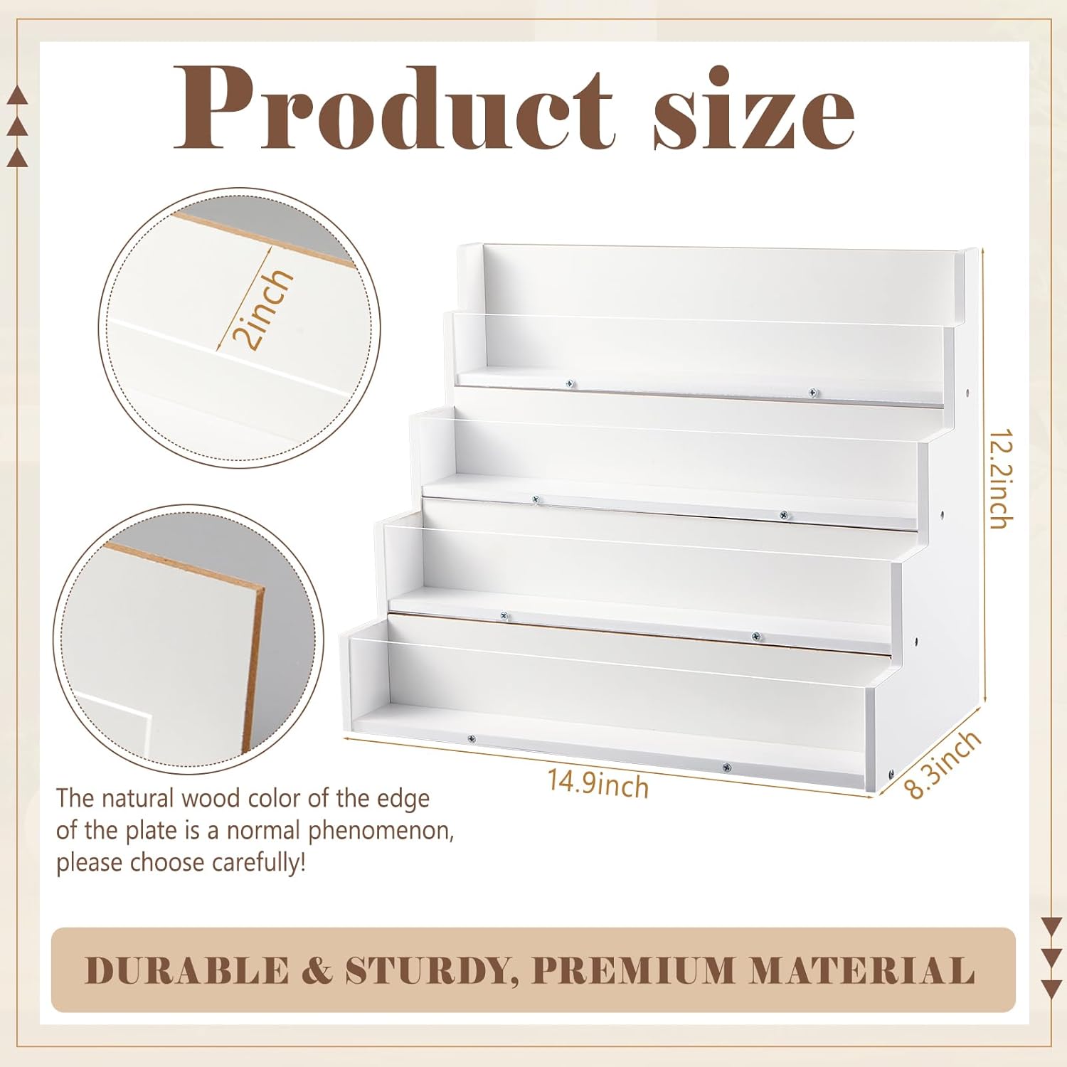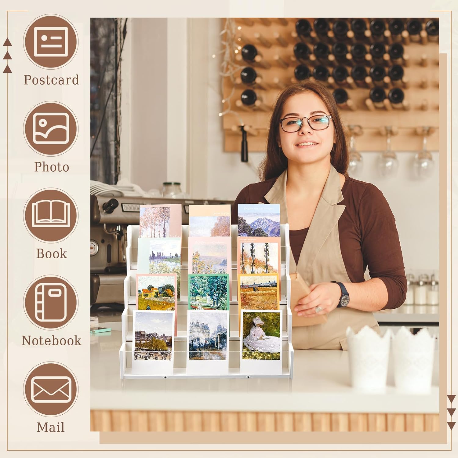 - Impressive Dimensions: our greeting card display stand boasts an overall size of about 14.96 x 12.2 x 8.27 inches, providing an ideal fit on your counter's pace; Each of its 4 tiers are about 2.8 inches high and 2 inches wide