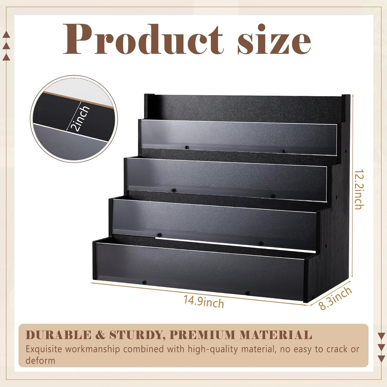 4 Tier Greeting Card Display Stand Black Bamboo and Acrylic Sticker Display Stand Trading Card Holder Retail Photos Shelf for Vendors Craft Collection & Show