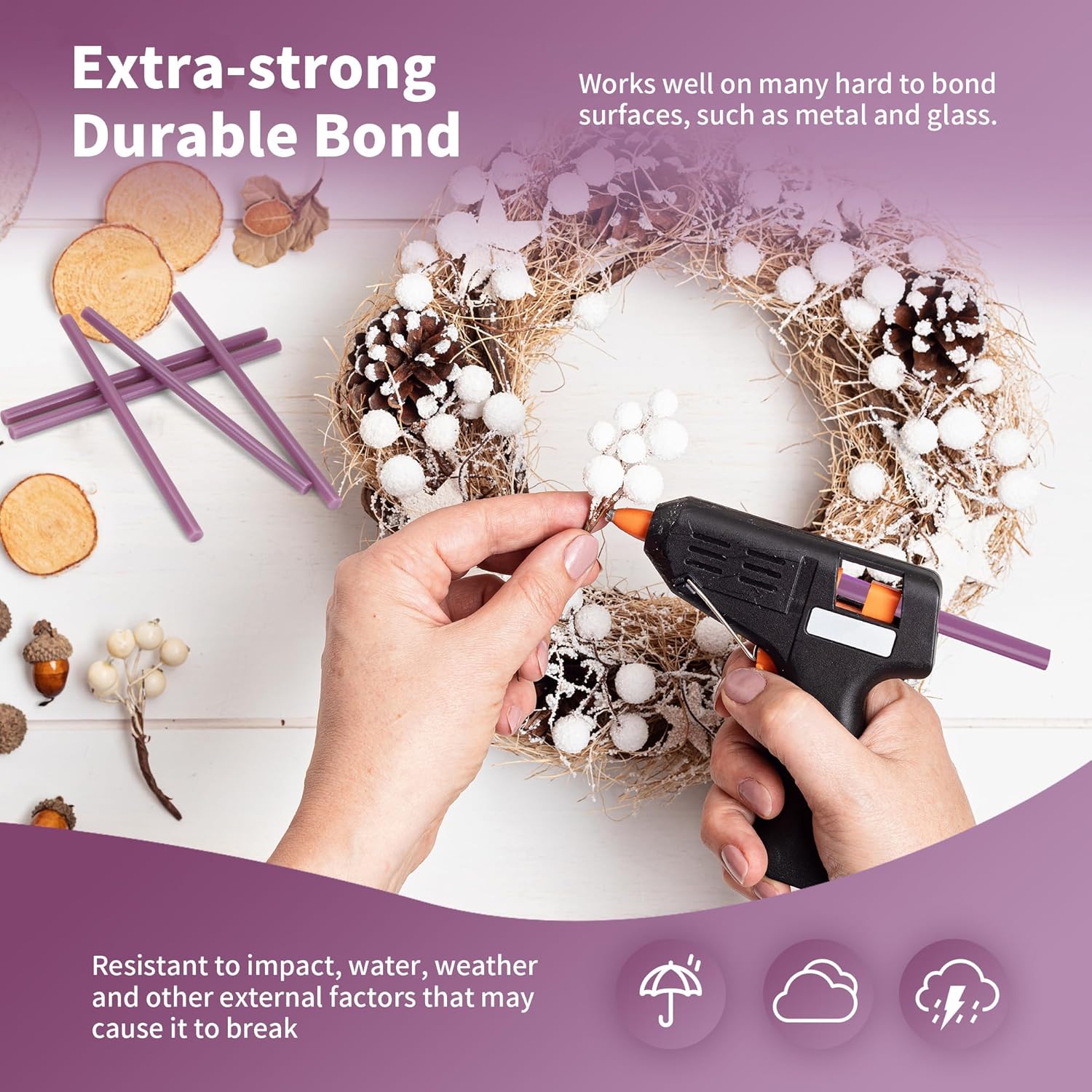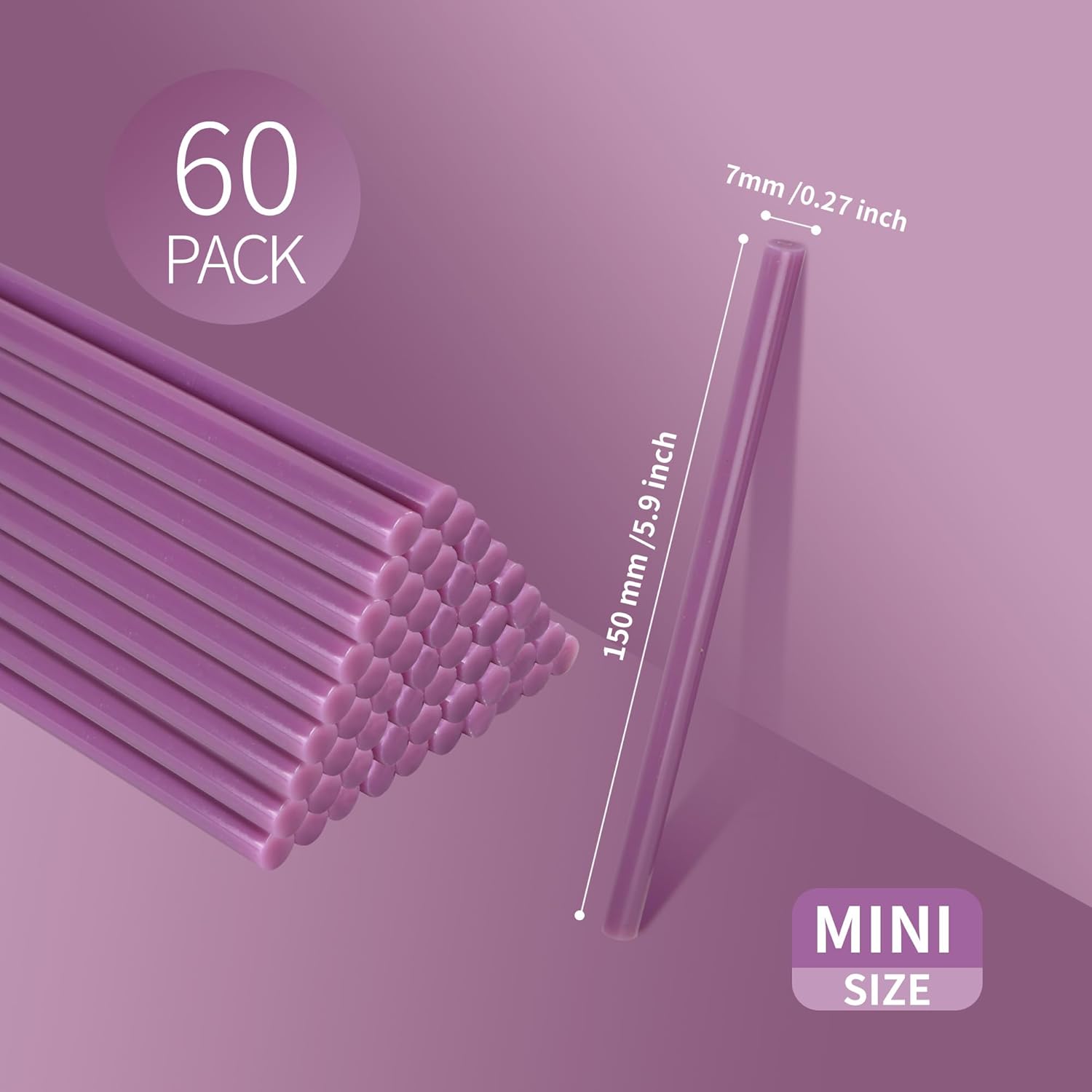 - 【Value Pack】60 pcs purple hot glue Sticks Mini Size, 7mm/0.27 inch diameter and 150mm/5.9inch glue sticks tool, compatible with most glue guns on the market.