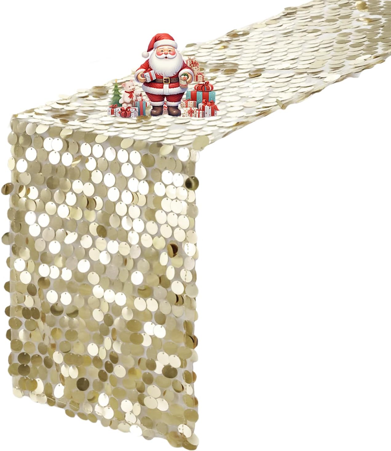 VHH Sequin Table Runner 12 x 108 inches Champagne Table Runner, Glitter Runner for Party Wedding Birthday, Party Spring Easter Rustic, Birthday Supplies Decorations (1 Pack).