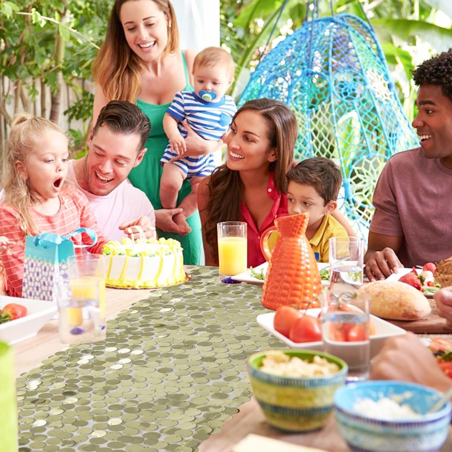 - Material: Our sequin table runner is made of large and round metal Payette, 18mm glitter round sequins sew tightly on the mesh fabric without worrying about the sequins falling.