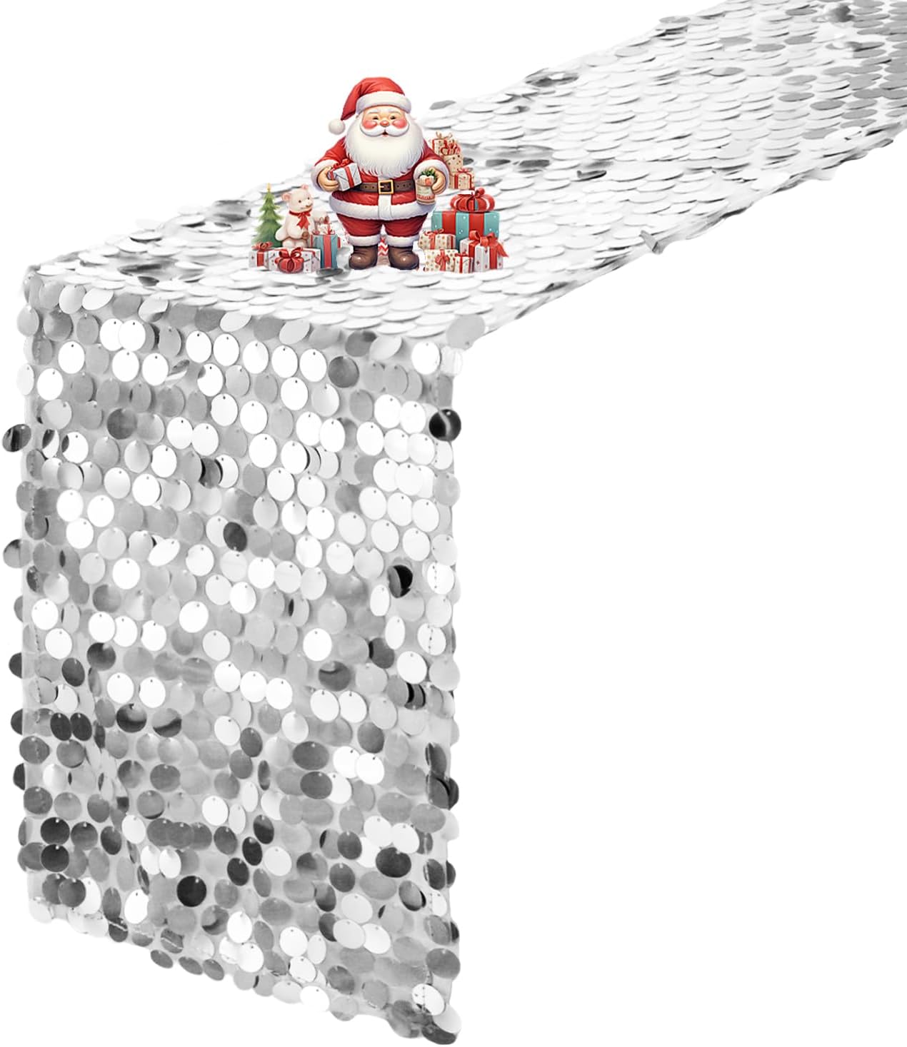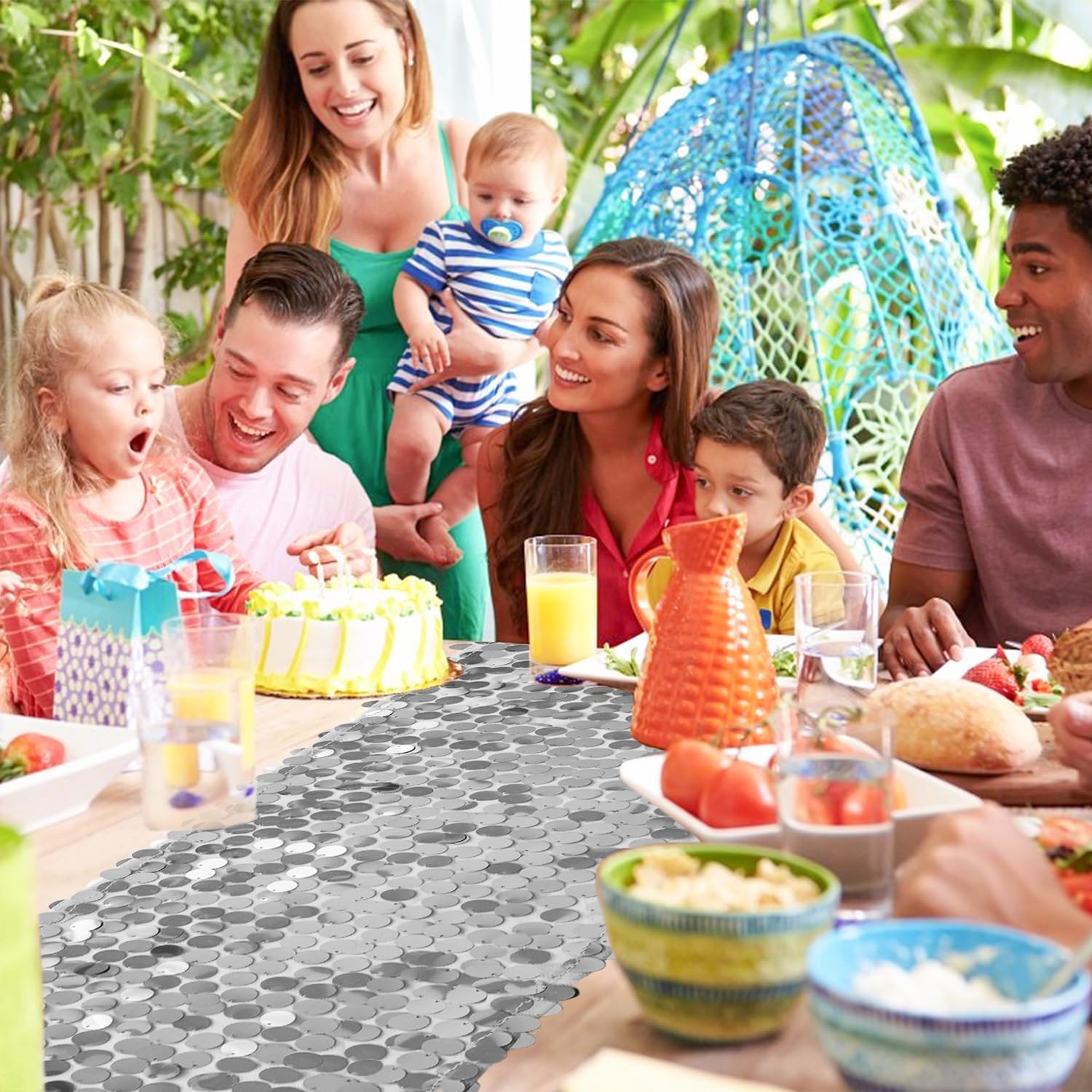 VHH Sequin Table Runner 12 x 108 inches Silver Table Runner, Glitter Runner for Party Wedding Birthday, Party Spring Easter Rustic, Birthday Supplies Decorations (1 Pack).