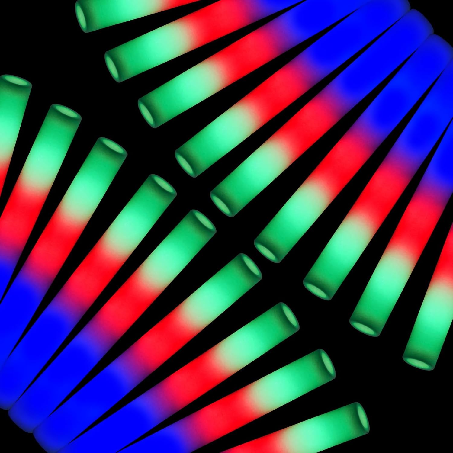 - 12-Pack Multicolor LED Foam Glow Sticks – Bright & Vibrant Party Lights: Each 16 x 1.6-inch glow stick features vibrant red, green, and blue LED lights, creating a stunning neon effect that catches everyone’s attention. Perfect for concerts, raves, weddings, birthdays, festivals, and night events, these light-up wands add energy and fun to any celebration!