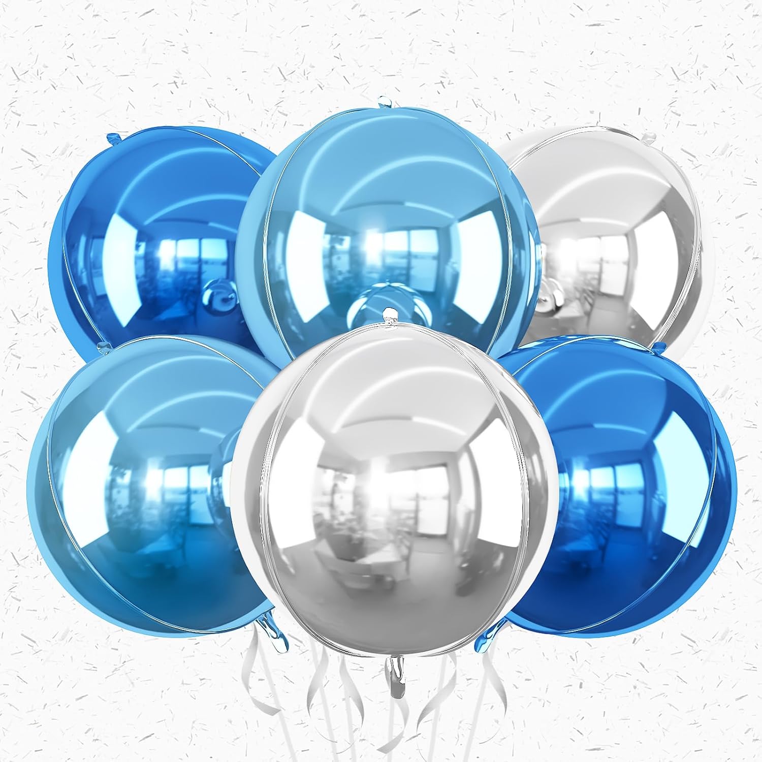 6Pcs Blue Silver Round Foil Balloons,Giant 4D Round Ball Balloons,22 Inch Metallic Blue Silver Balloon for Birthday Wedding Graduation Prom Party Decorations
