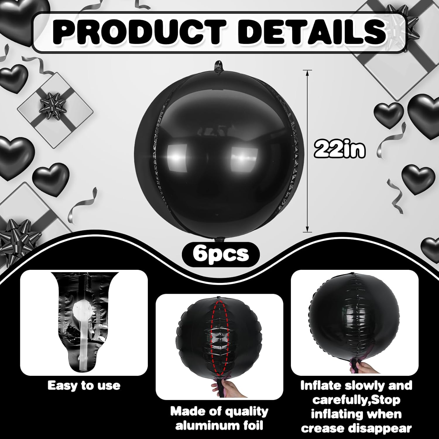 - 【6PCS ROUND BALLOONS】package include 6pcs 22inch black round giant 4D foil balloons. The black round balloons are large enough to help you better decorate your party.