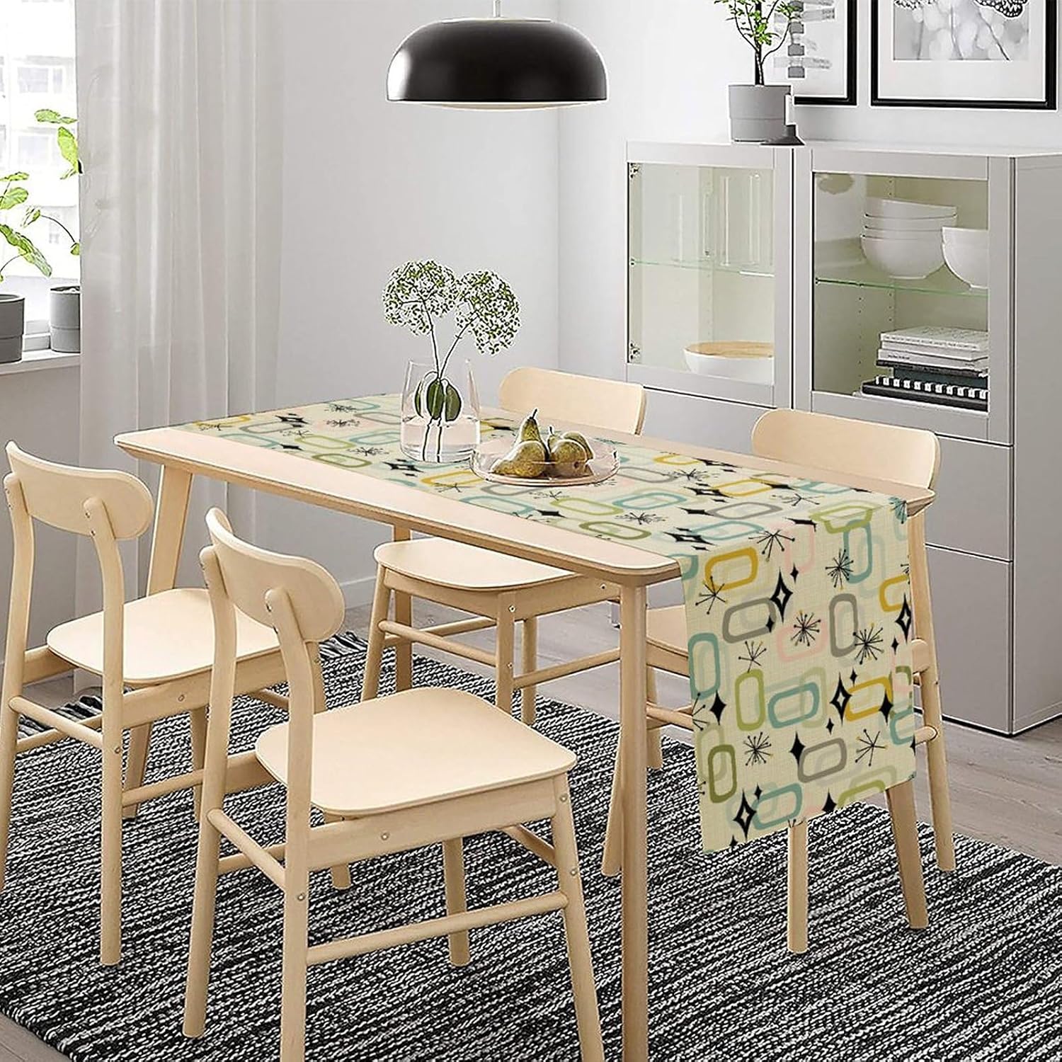 Mid Century Table Runner, Flag Retro Atomic Starburst 1950s Abstract Geometric Space Tabletop Decoration for Home Kitchen Restaurant Table Flag 13x36 Inch