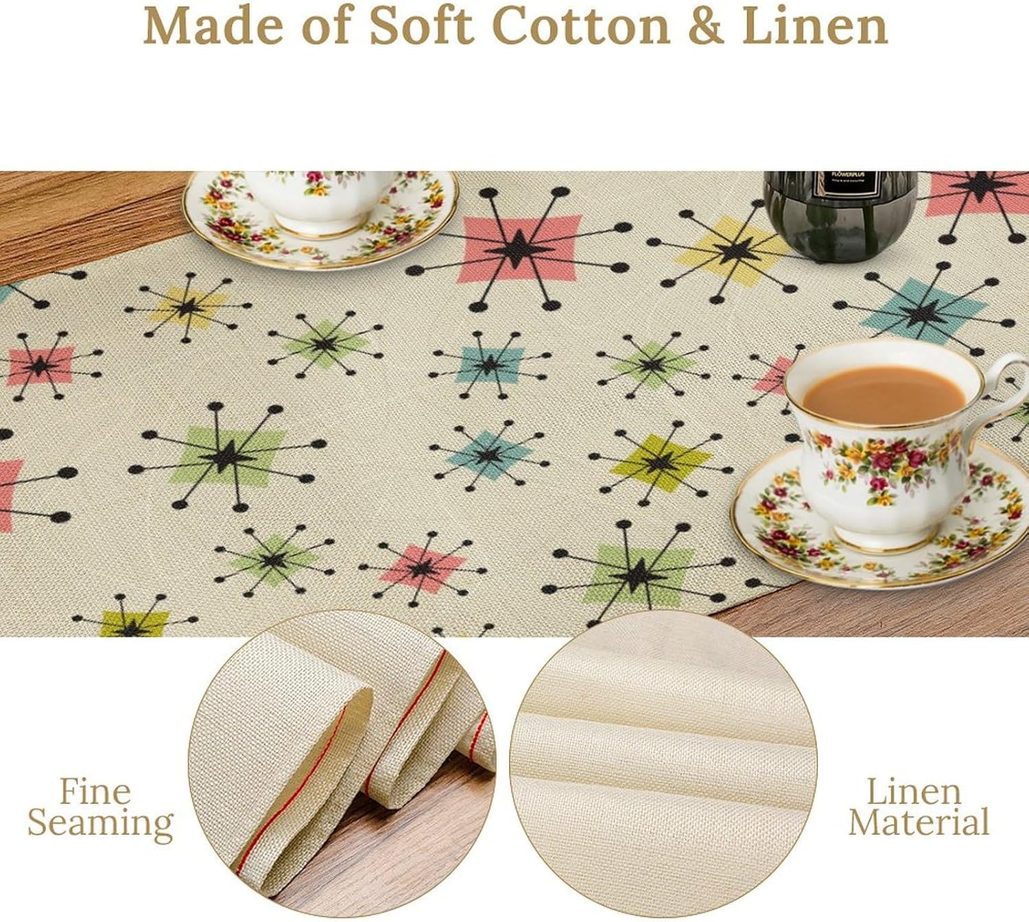 Mid Century Table Runner, Flag Retro Atomic Starburst 1950s Abstract Geometric Space Tabletop Decoration for Home Kitchen Restaurant Table Flag 13x108 Inch