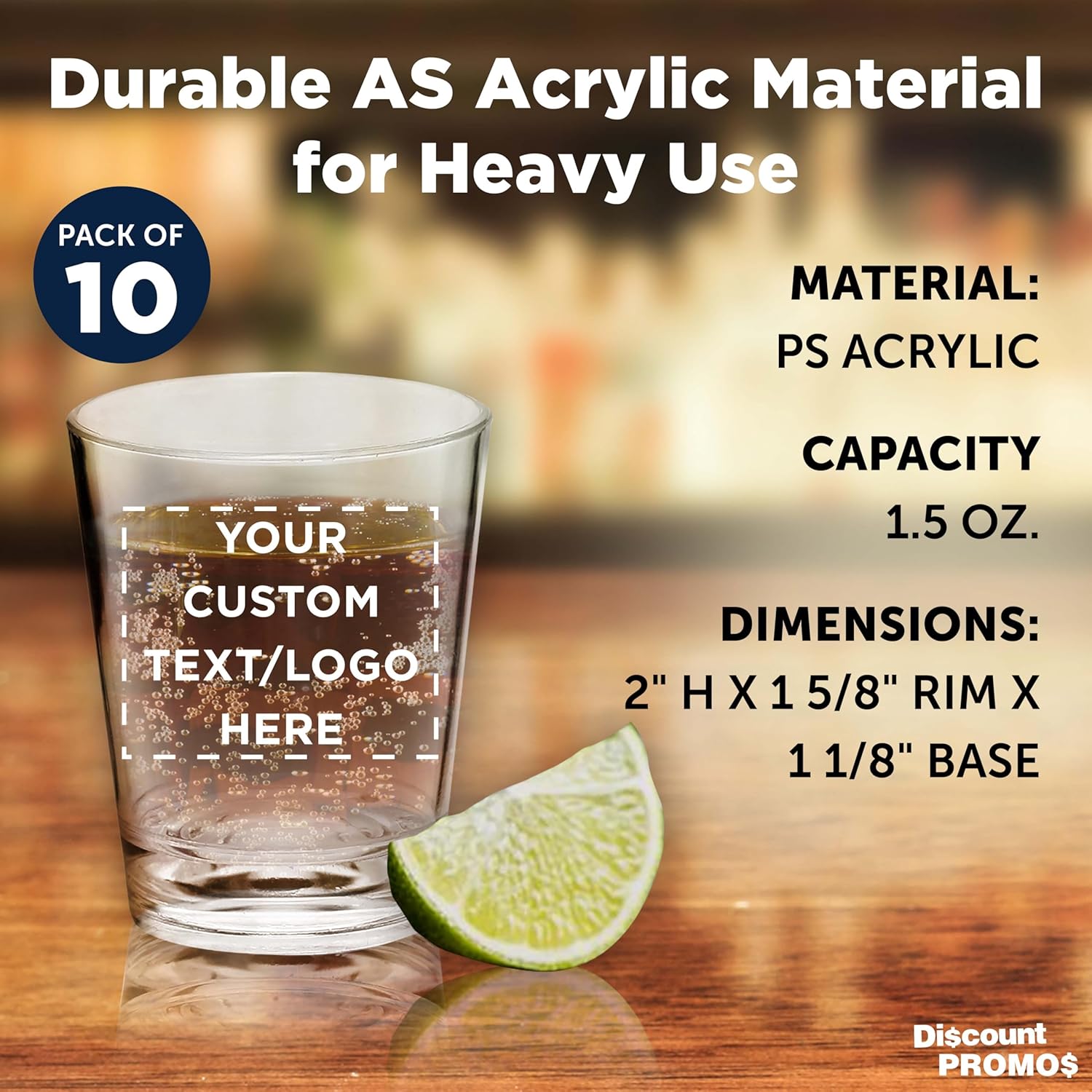 Custom Translucent Plastic Shot Glasses 1.5 oz. Set of 10, Personalized Bulk Pack - Acrylic, Great for Wedding, Party, Birthday, Gifts - Frosted Clear