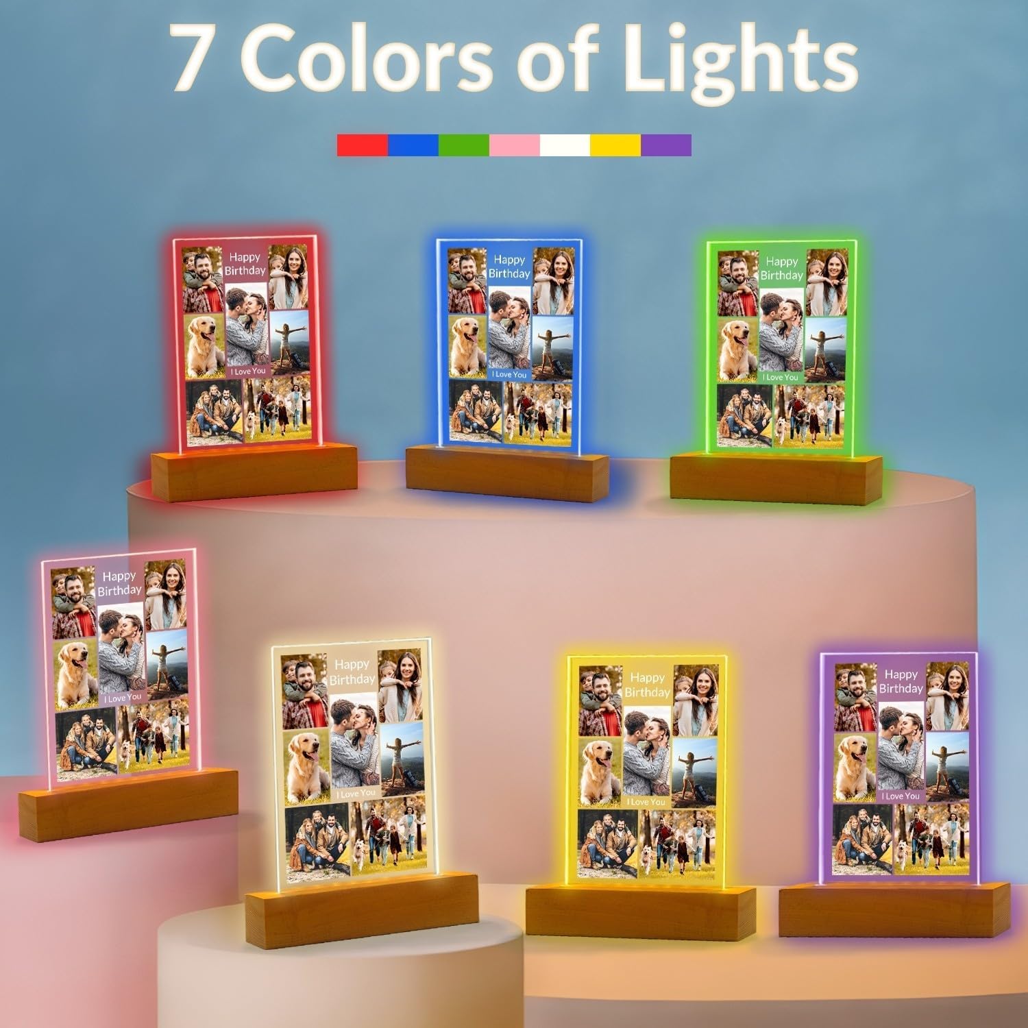Personalized Birthday Gifts for Women and Men, Custom Picture Frames with Photo, Customized Photo Frame with Night Light, Personalized Anniversary Couple Gifts for Him and Her