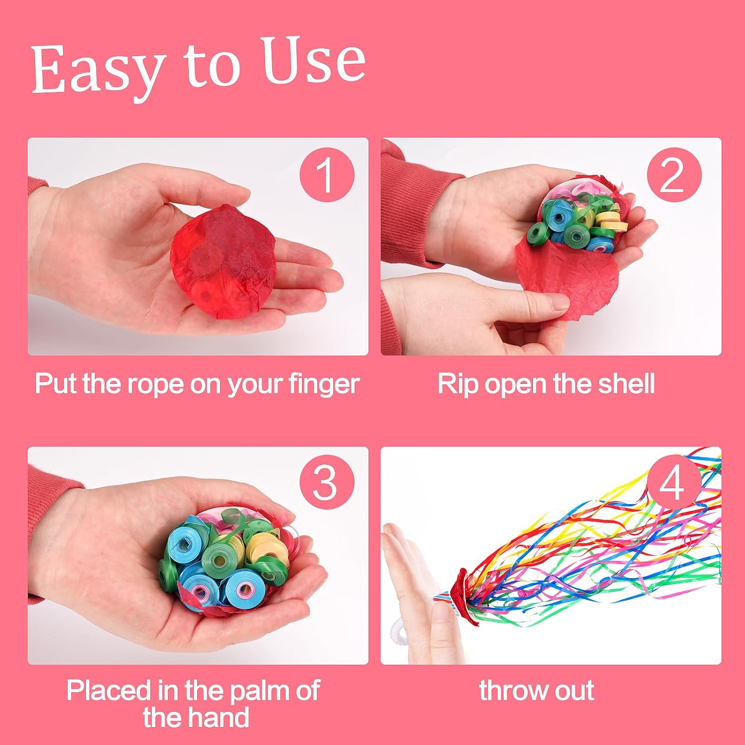 - How to use - Put the looped handle above the ribbons on your finger, then tear the wrapping paper at the bottom and throw them at a forward and upward angle, the more ribbons you throw at the same time the better the result. You can achieve a shocking effect and an instant lift in atmosphere