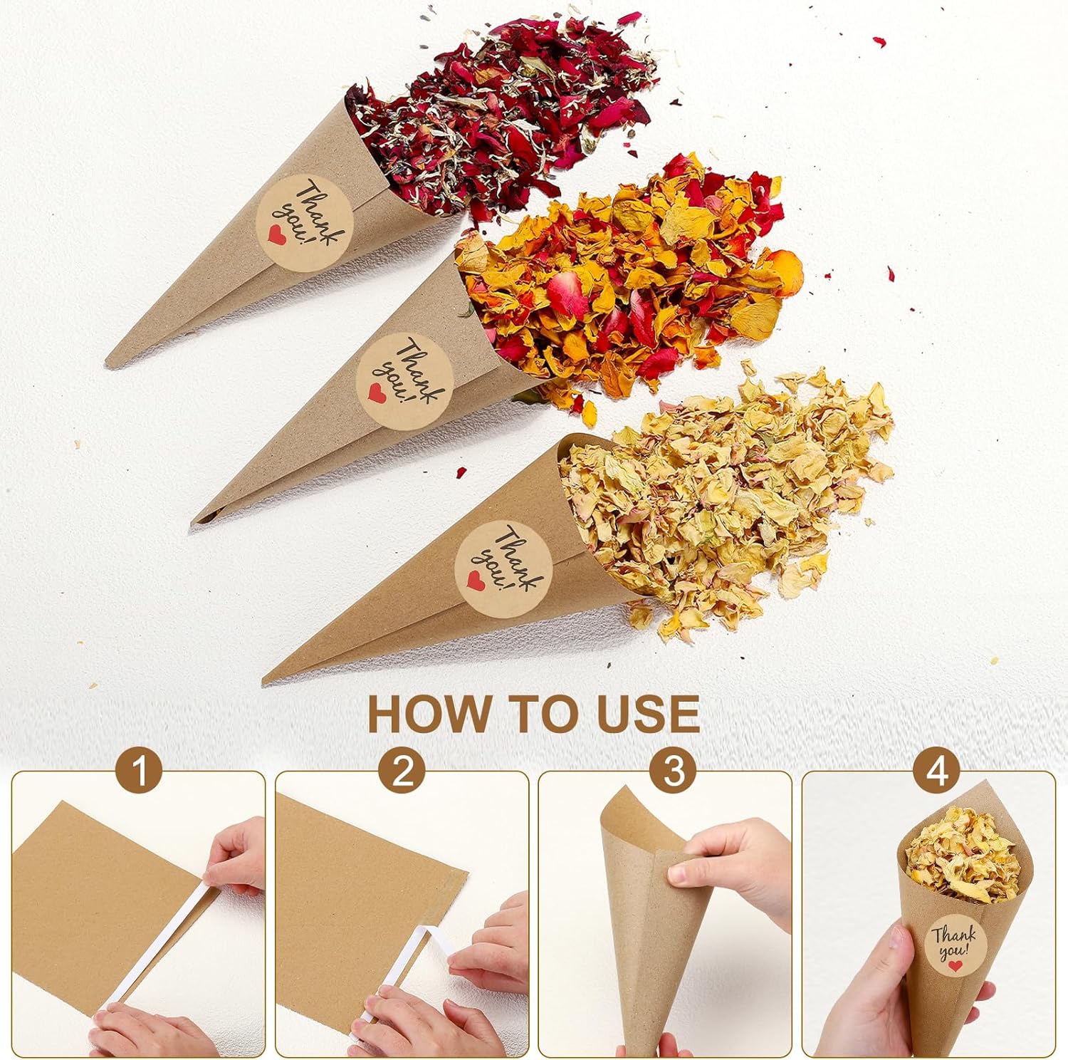 - Durable Material - The confetti cones and paper cone boxes are made of paper material, have no odor, are comfortable to touch, light quality, and do not take up extra space. The dried petals are made of natural rose mix, you can smell the fragrance of different natural rose mixes, giving you a romantic experience.