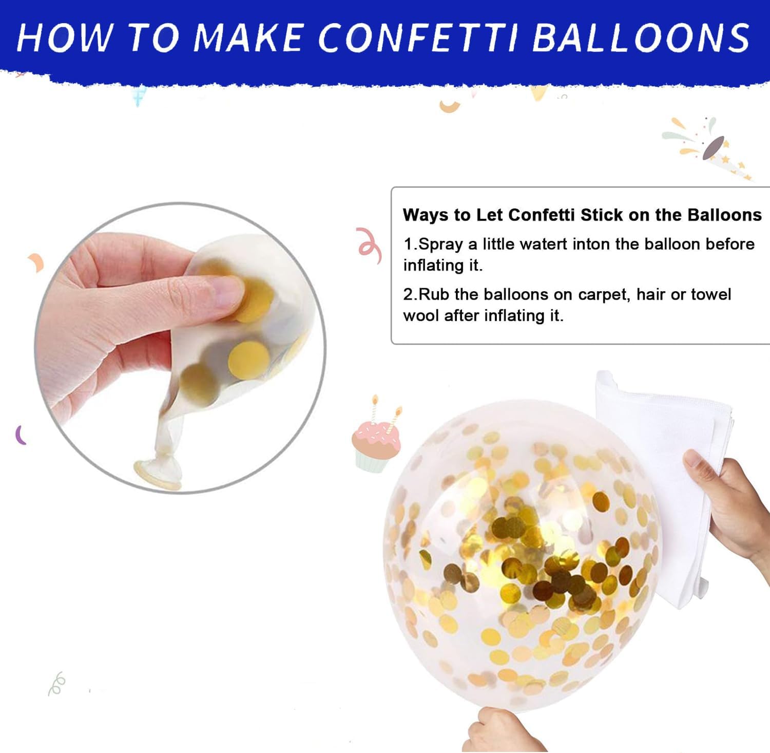 - ăTips For Confetti BalloonsăPlease use a dry towel, carpet or hair to gently wipe the balloon to obtain static electricity, and then slowly shake the balloon to make the confetti stick to the side of the balloon. After the party, you can pierce the balloon and make the confetti fall, adding a lot of fun to the party!