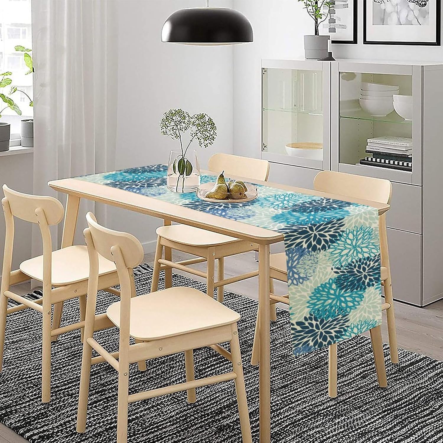 Floral Table Runner,Blue Flowers Print Spring Summer Table Cloth Kitchen Dining Table Home Party Decoration 13x72 Inch