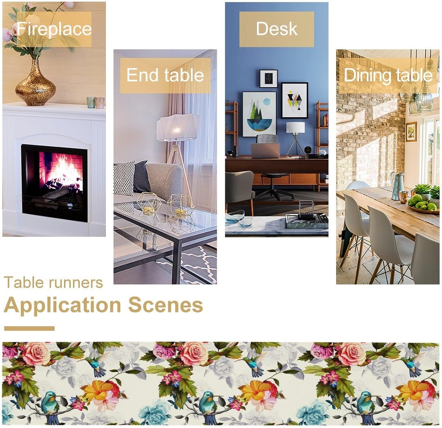 Hummingbird Table Runner,Vintage Floral Country Style Table Cloth Home Kitchen Restaurant Party Decoration 13x108 Inch