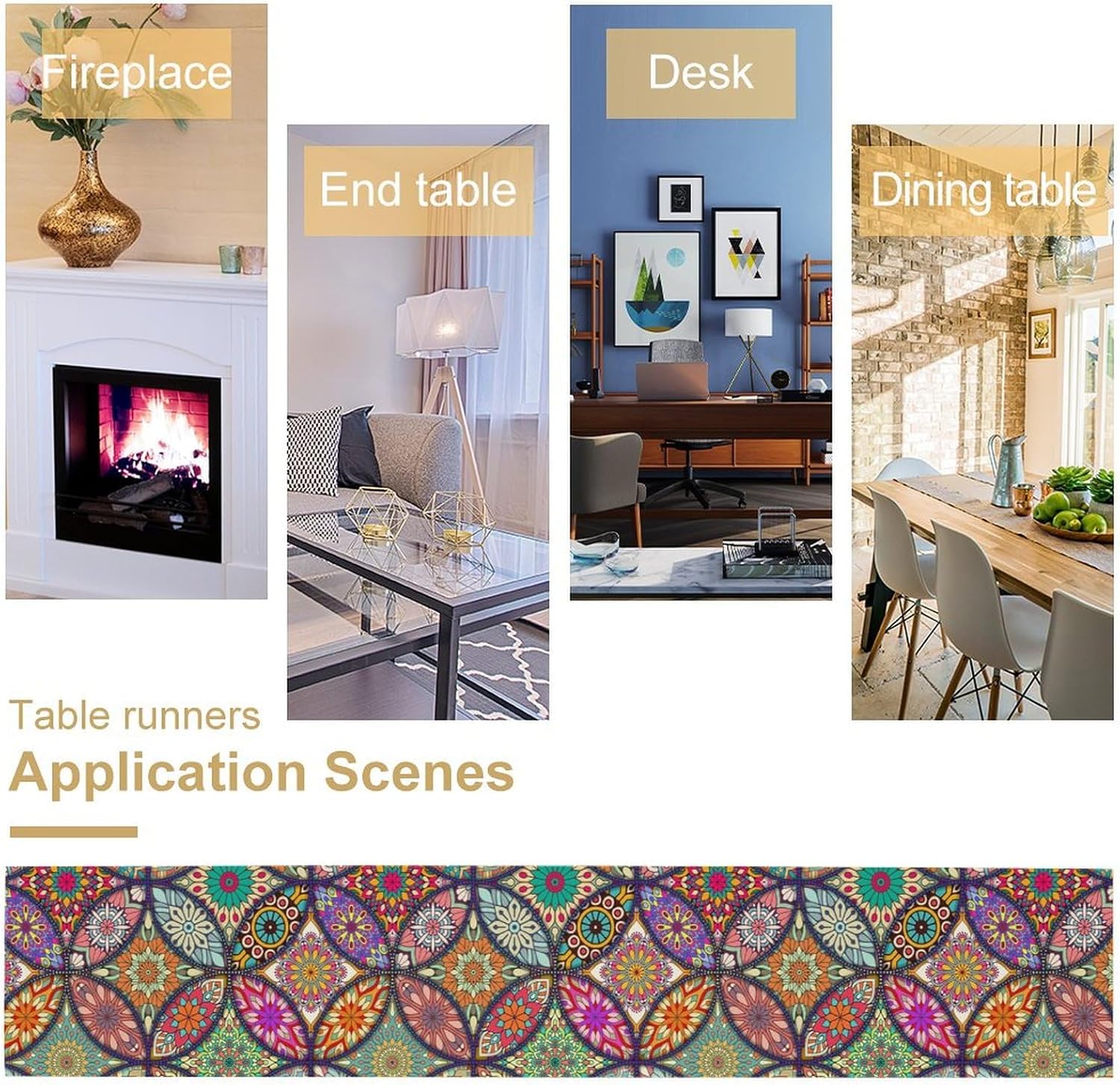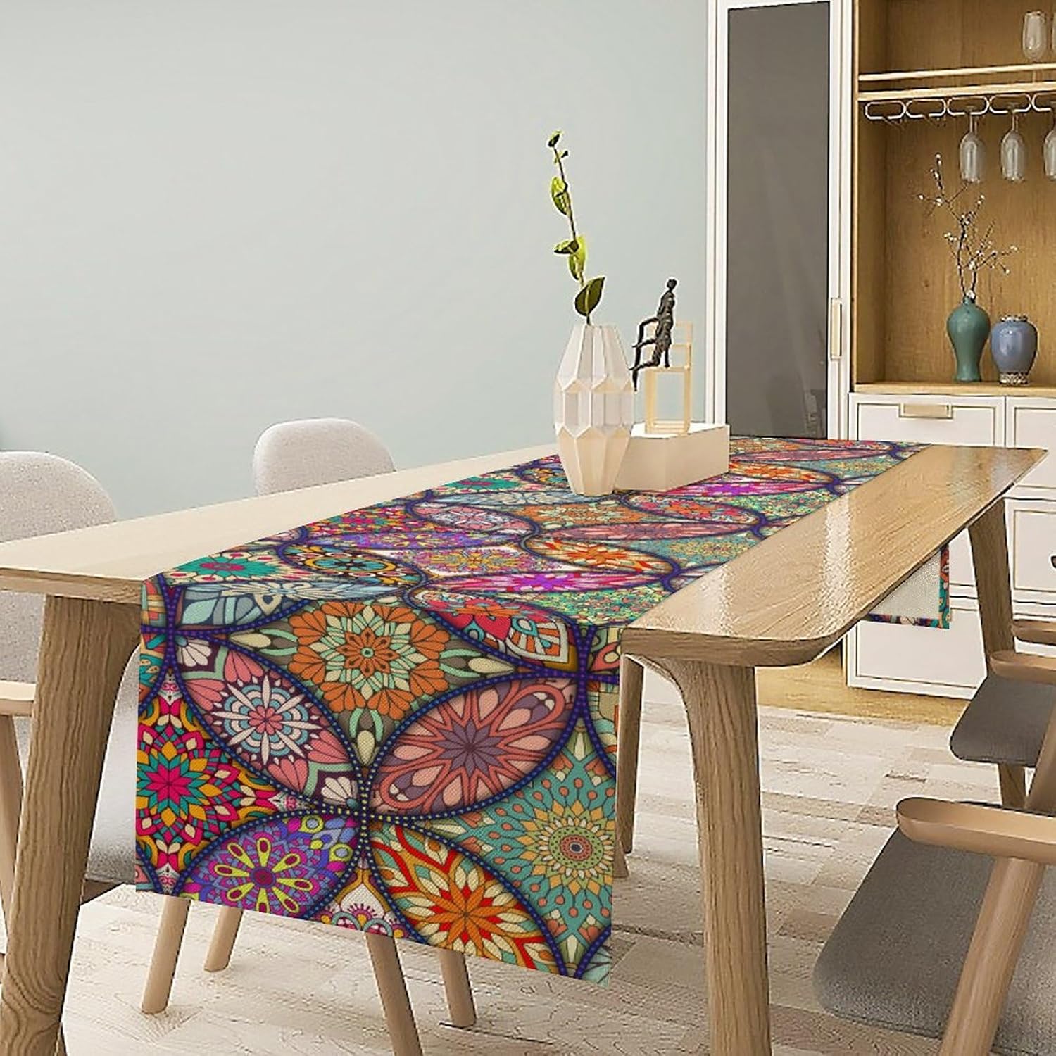 Boho Floral Table Runner,Colorful Flower Retro Bohemian Table Cloth Kitchen Dining Table Home Party Decoration 13x60 Inch